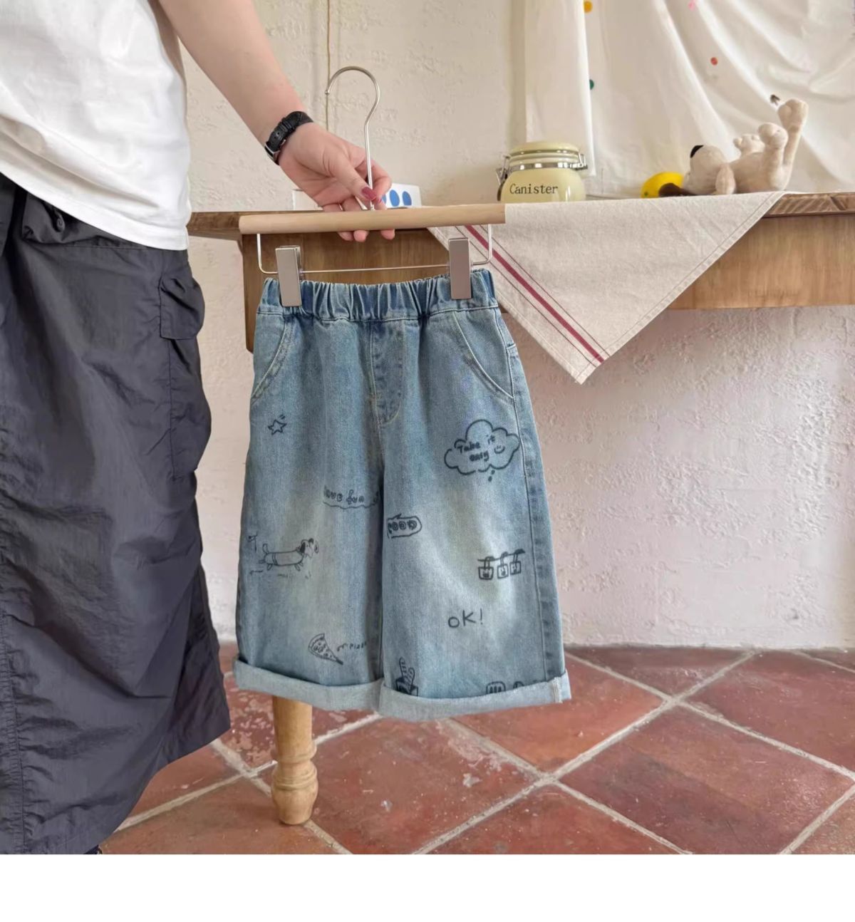 소년과 소녀를위한 어린이 청바지 2025 만화 낙서 부드러운 청바지 어린이 느슨한 캐주얼 다목적 스트레이트 바지 봄스토어 가기
