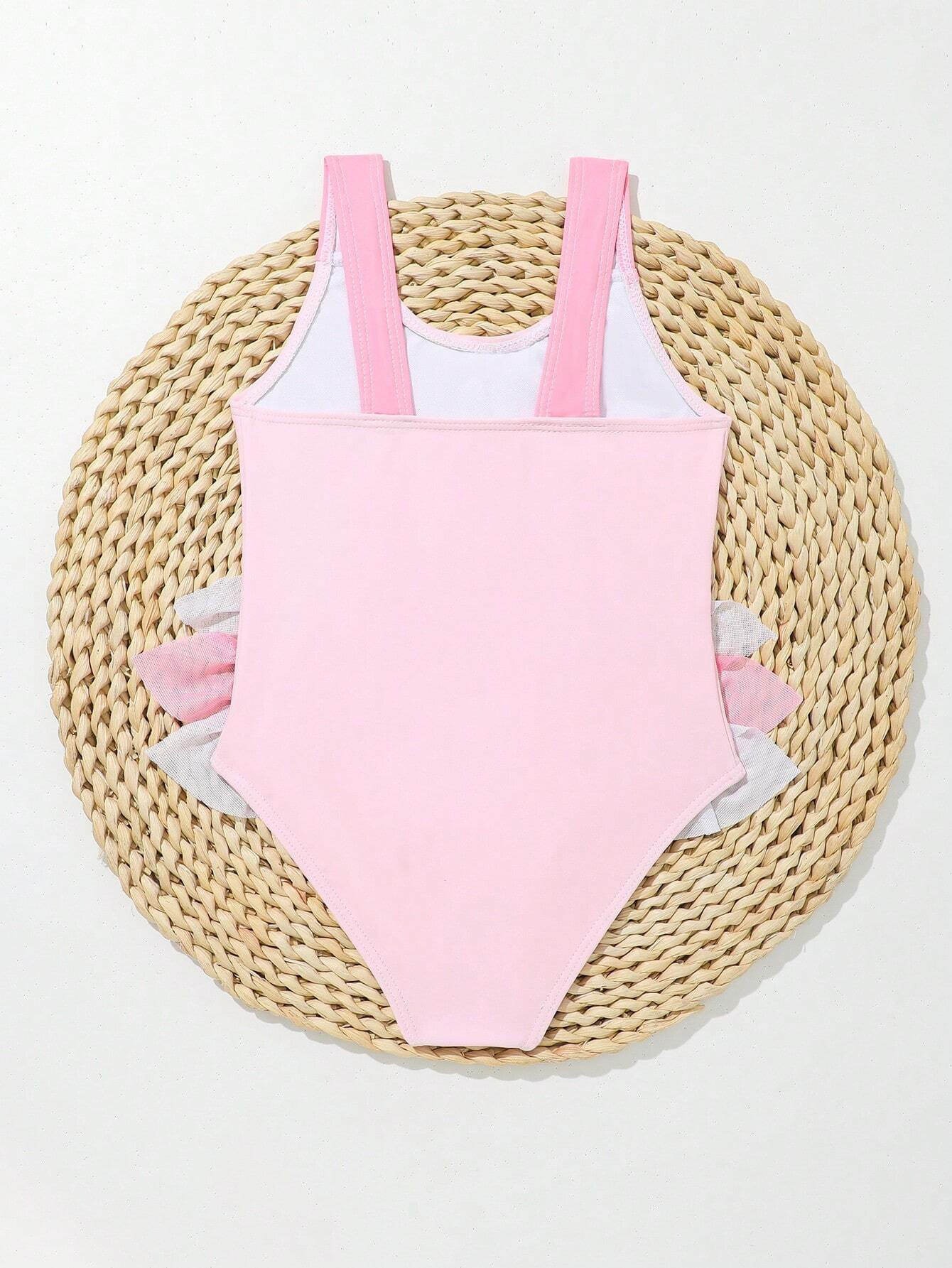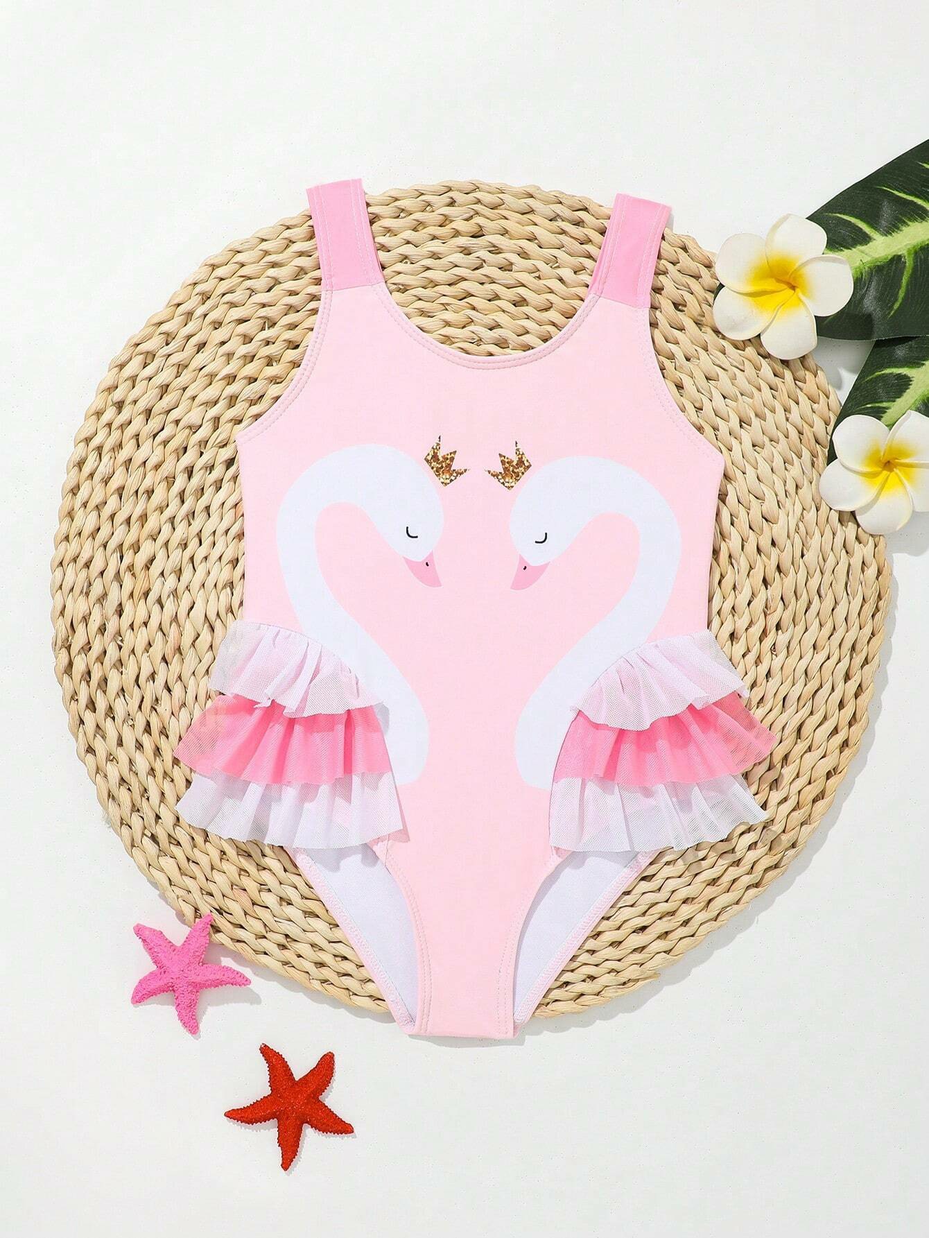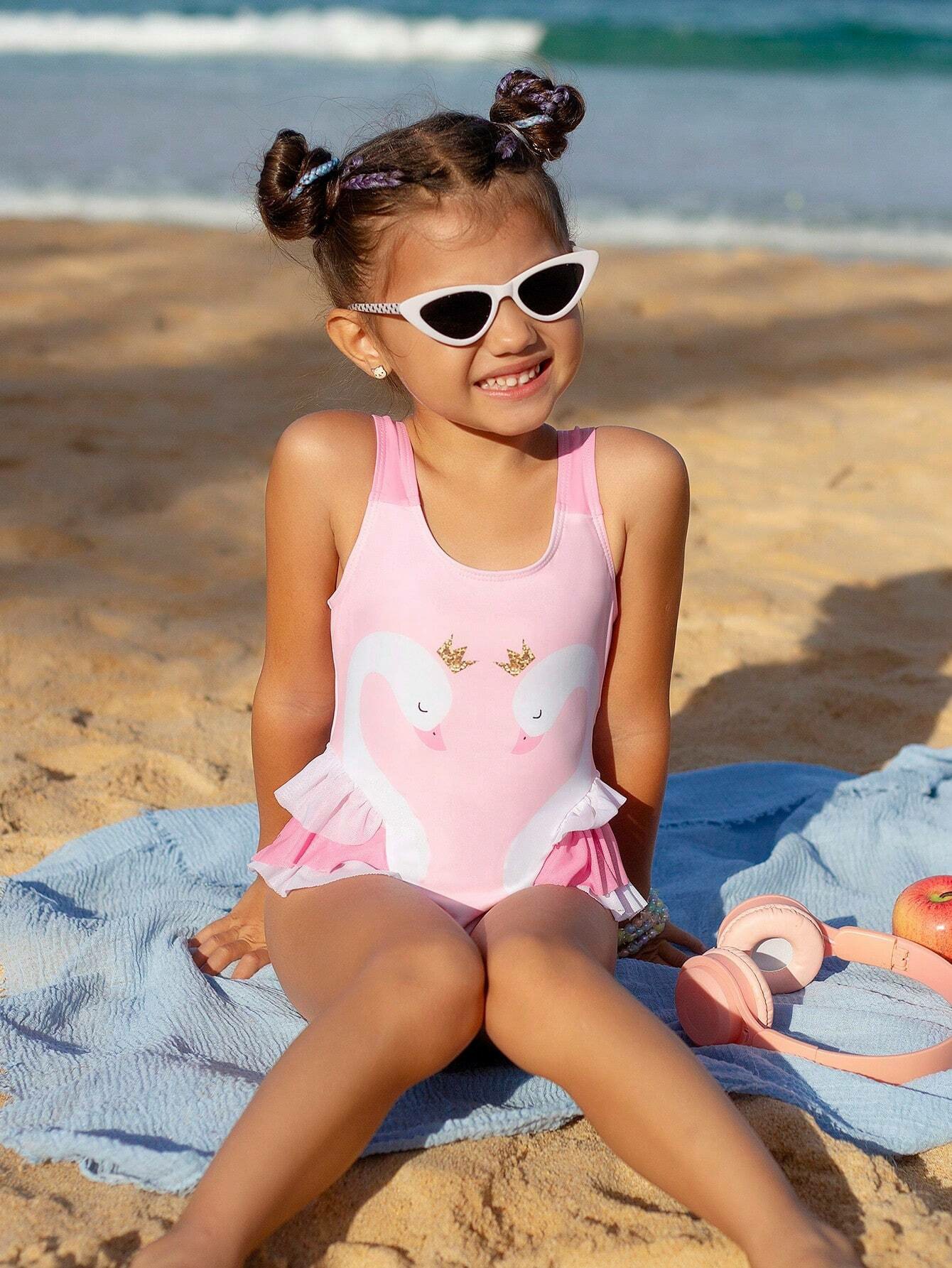 새로운 여자 원피스 수영복 플라밍고 귀여운 프릴 아기 소녀 수영복 어린이 고탄성 어린이 수영복