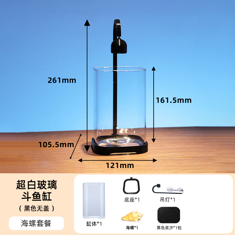 • 커버가 없는 블랙 슈퍼 화이트 유리 베타 어항 [소라 패키지 블랙 샌드] - 탱크 본체 + 베이스 + 샹들리에 + 소라 + 블랙 바닥 모래