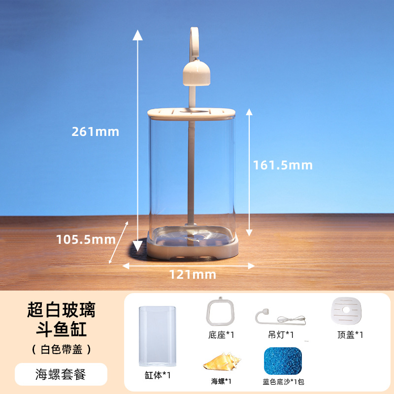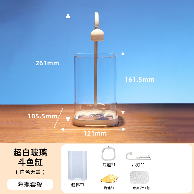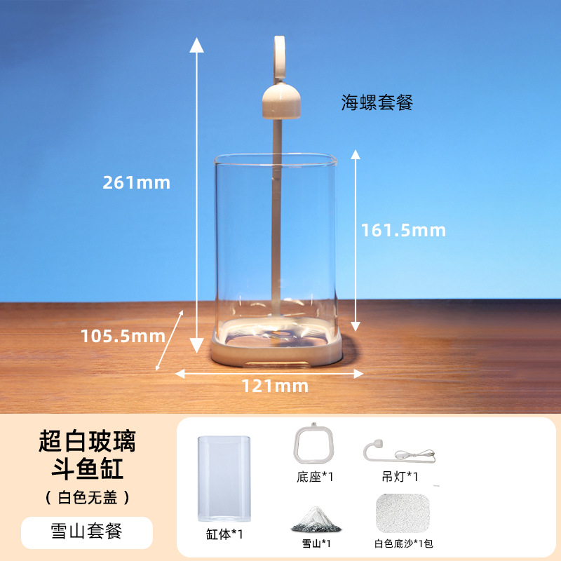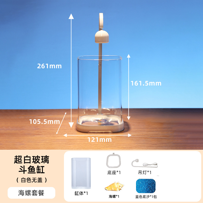 • 뚜껑이 없는 초백색 유리 베타 어항 [소라 패키지 백사장] - 탱크 본체 + 베이스 + 샹들리에 + 소라 + 흰색 바닥 모래