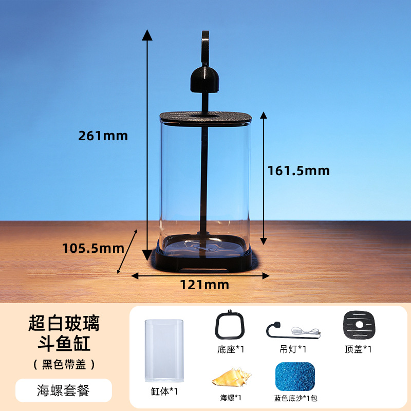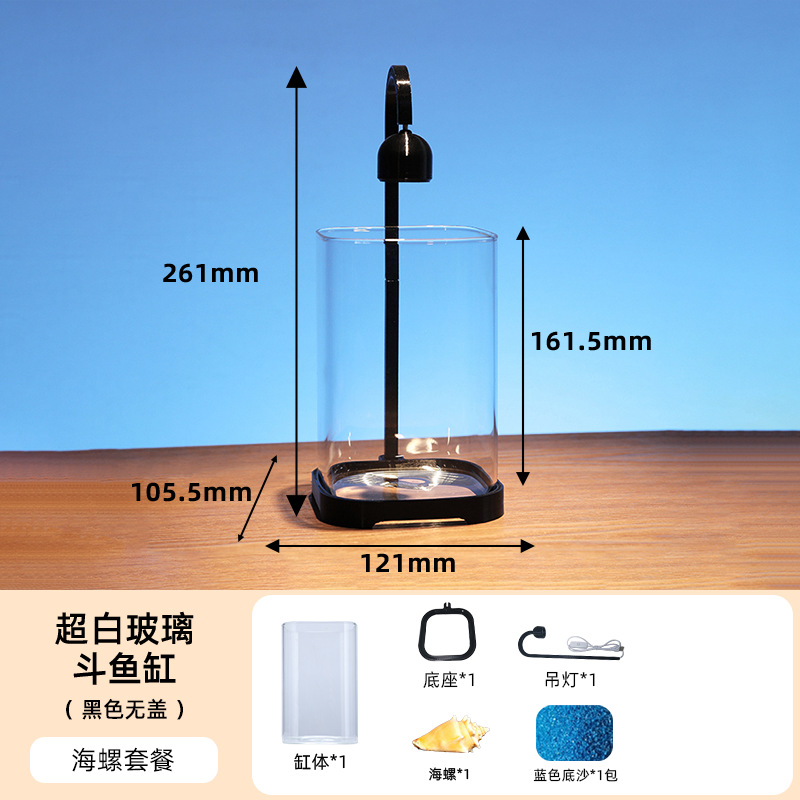 • 커버가 없는 초백색 유리 베타 어항 [소라 패키지 블루 샌드] - 탱크 본체 + 베이스 + 샹들리에 + 소라 + 블루 바닥 모래