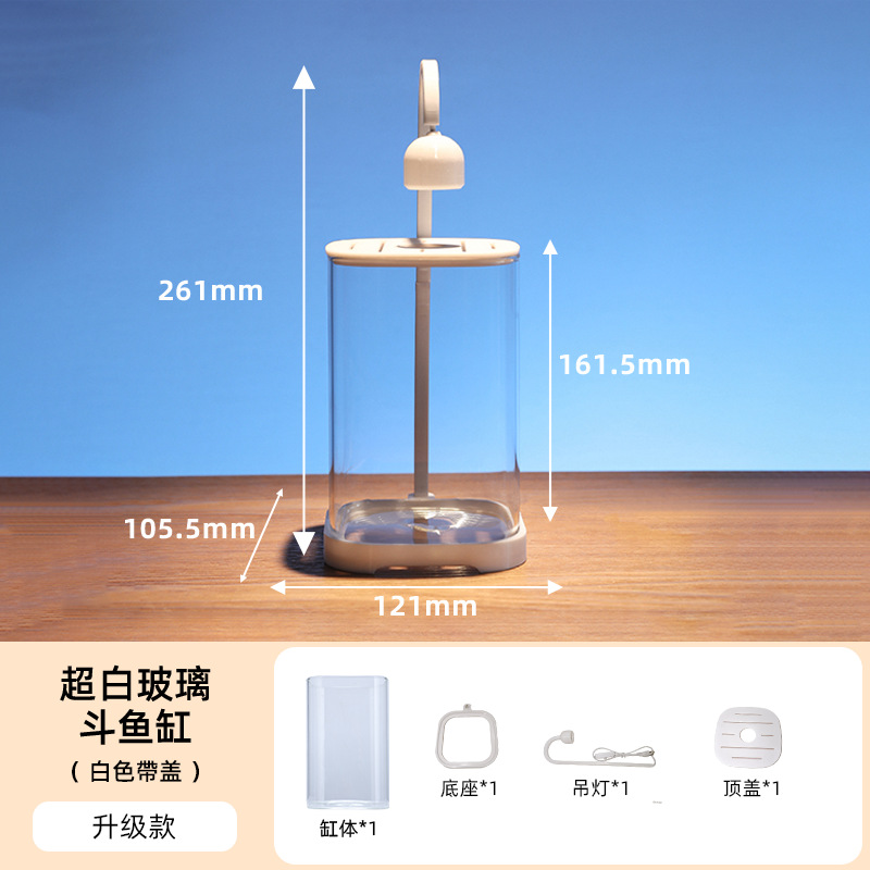 • 초백색 유리 베타 어항 화이트 뚜껑 포함 [업그레이드 버전] - 어항 본체 + 덮개 + 받침대 + 조명