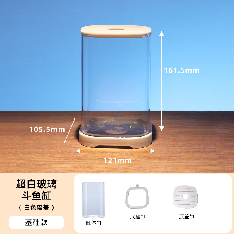 • 초백색 유리 베타 어항 화이트 뚜껑 포함 [기본형] - 어항 본체 + 덮개 + 받침대
