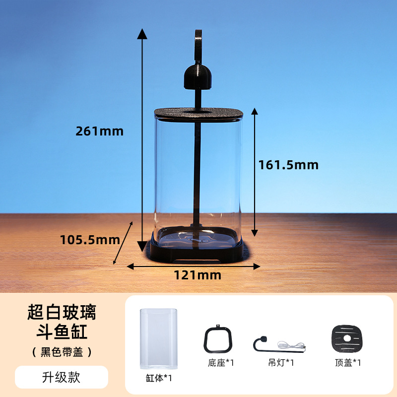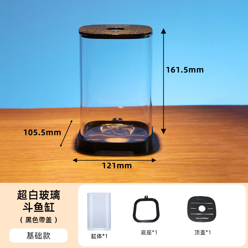 • 초백색 유리 베타 어항 블랙 뚜껑 포함 [업그레이드 버전] - 어항 본체 + 덮개 + 받침대 + 조명
