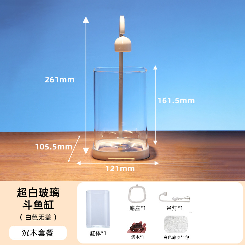 • 뚜껑이 없는 초백색 유리 베타 어항 [싱크된 나무 패키지] - 탱크 본체 + 베이스 + 샹들리에 + 싱크된 나무 + 흰색 바닥 모래