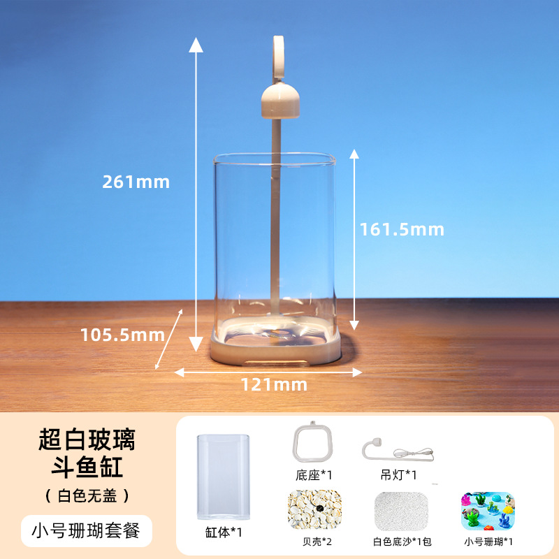 • 커버가 없는 초백색 유리 베타 어항 [소형 산호 패키지] - 탱크 본체 + 베이스 + 샹들리에 + 소형 산호 + 껍질 + 흰색 바닥 모래