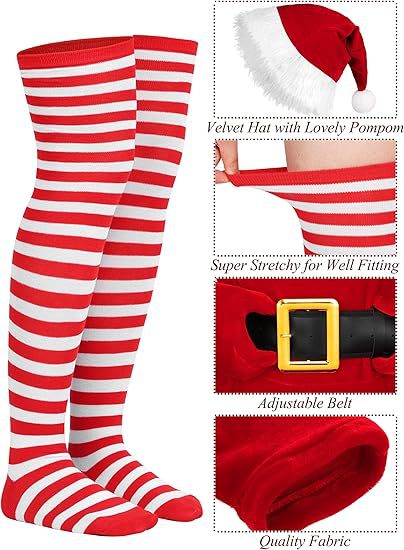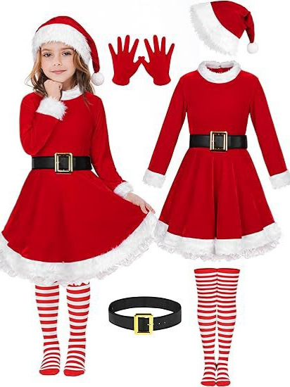2025 크로스보더 산타클로스 슈트 드레스 의상 벨트 포함 무릎 위 양말 모자 장갑 코스프레스토어 가기