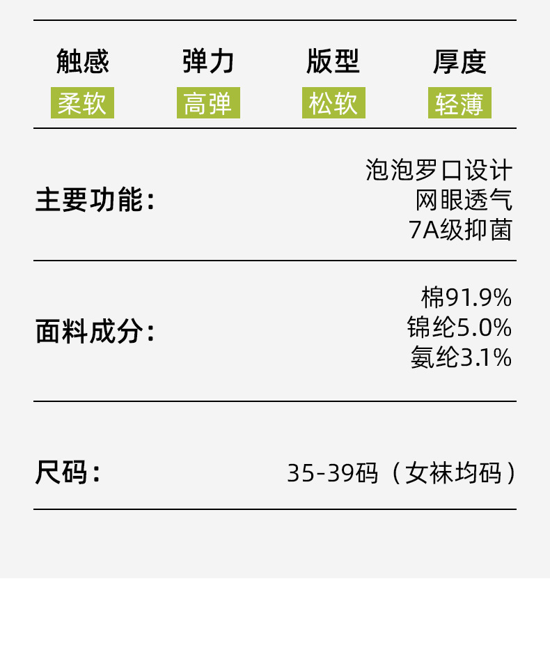여성용 양말 여름 얇은 메쉬 통기성 항균 및 탈취제 종아리 중간 양말 산후 양말 뼈없는 레이스 스타킹스토어 가기