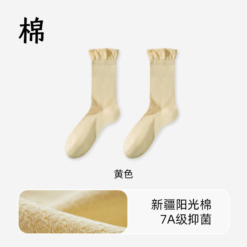 여성용 양말 여름 얇은 메쉬 통기성 항균 및 탈취제 종아리 중간 양말 산후 양말 뼈없는 레이스 스타킹