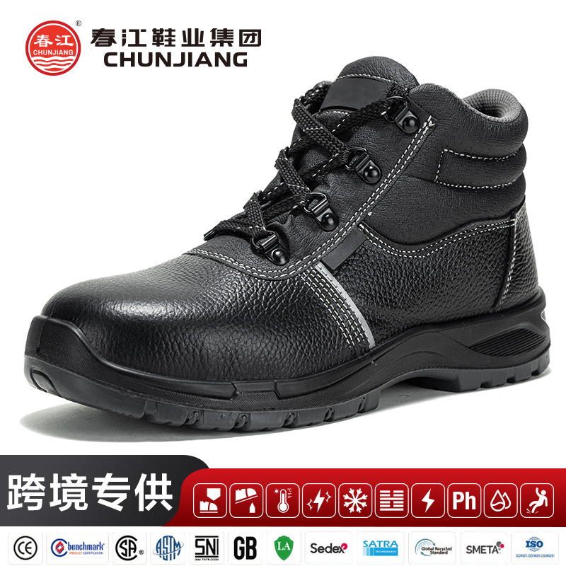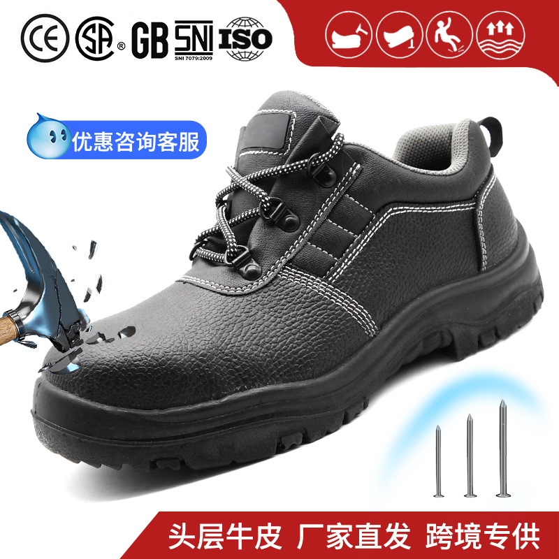 소가죽 하이탑 노동 보호 신발, 충격 방지, 펑크 방지, 정전기 방지 안전 신발, 강철 발가락 방수 건설 현장 내마모성 남성용 노동 보호 신발