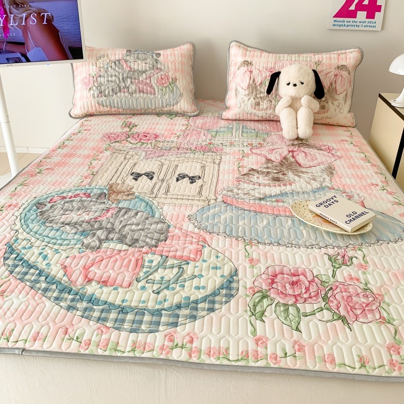 여름 아이스 실크 라텍스 매트 3피스 세트 시원한 실크 에어컨 매트 기계 세탁 가능한 매트리스 기숙사 여름 소프트 매트