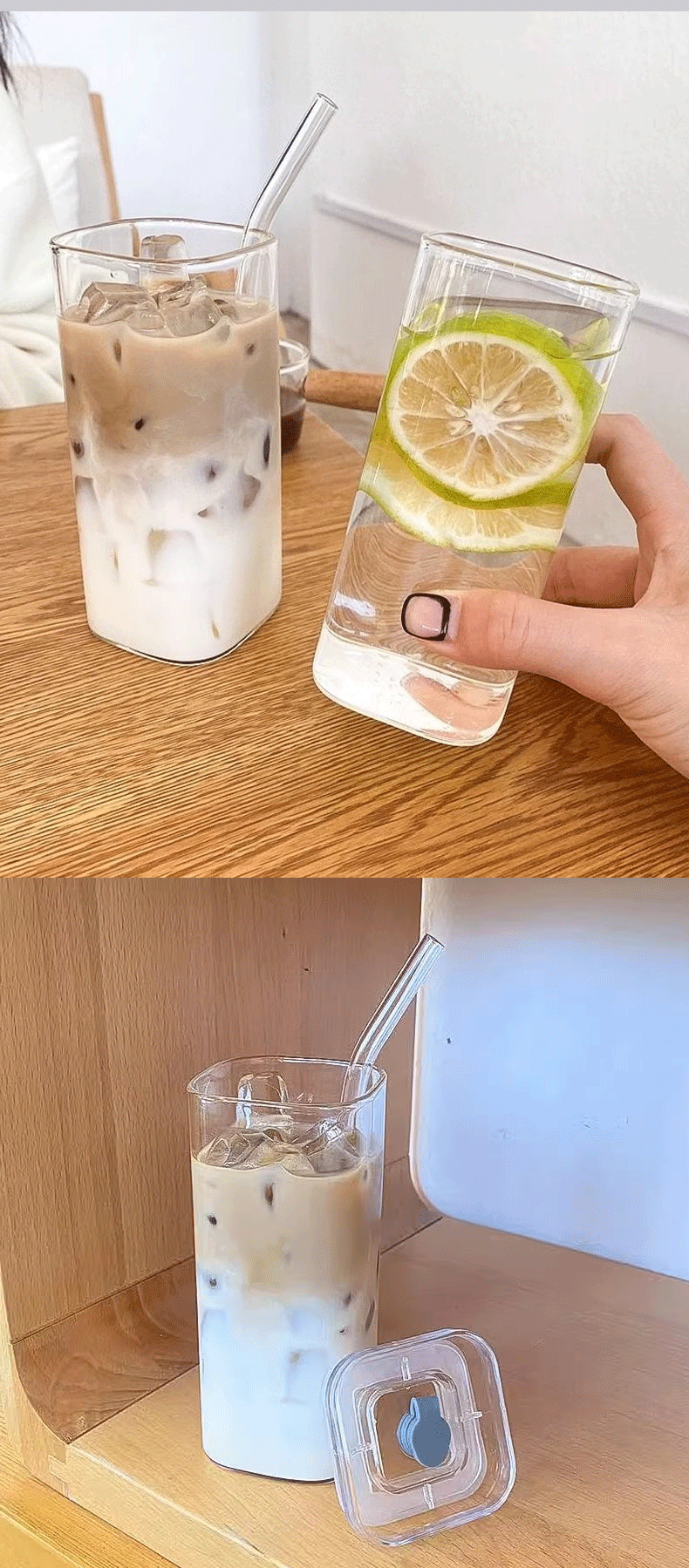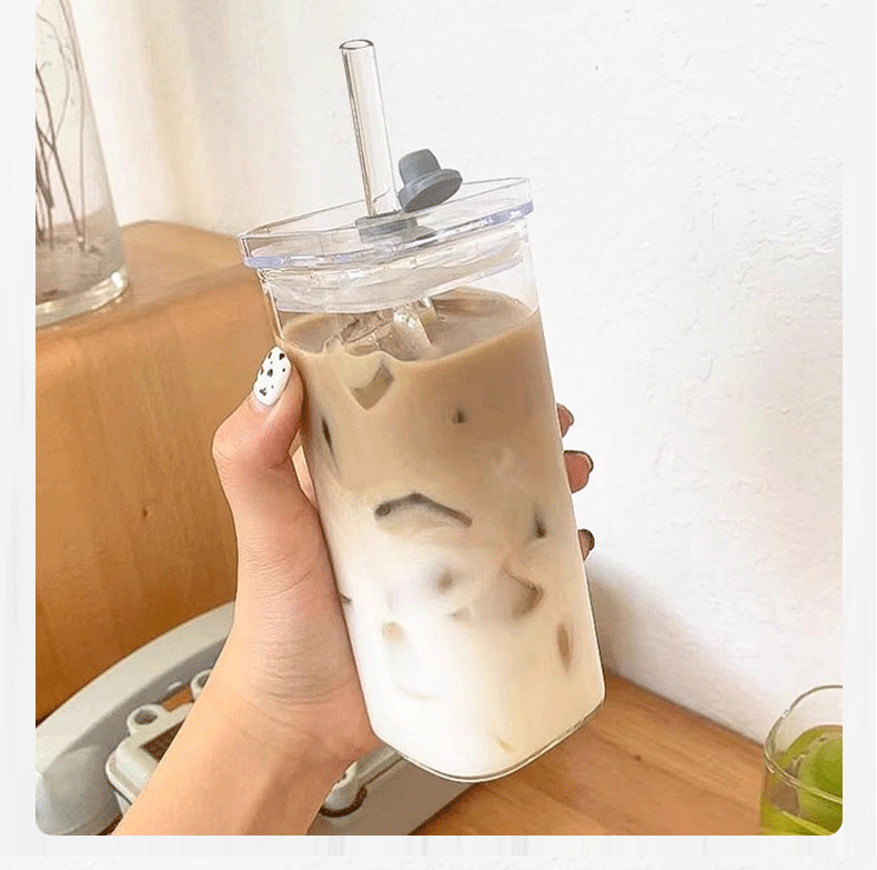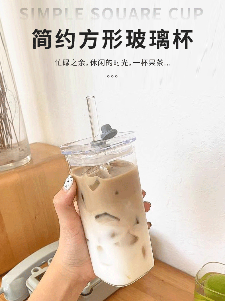 뚜껑이 있는 한국식 사각 유리 물컵, 투명하고 간단한 가열 컵, 가정용 커피 컵, 주스 컵