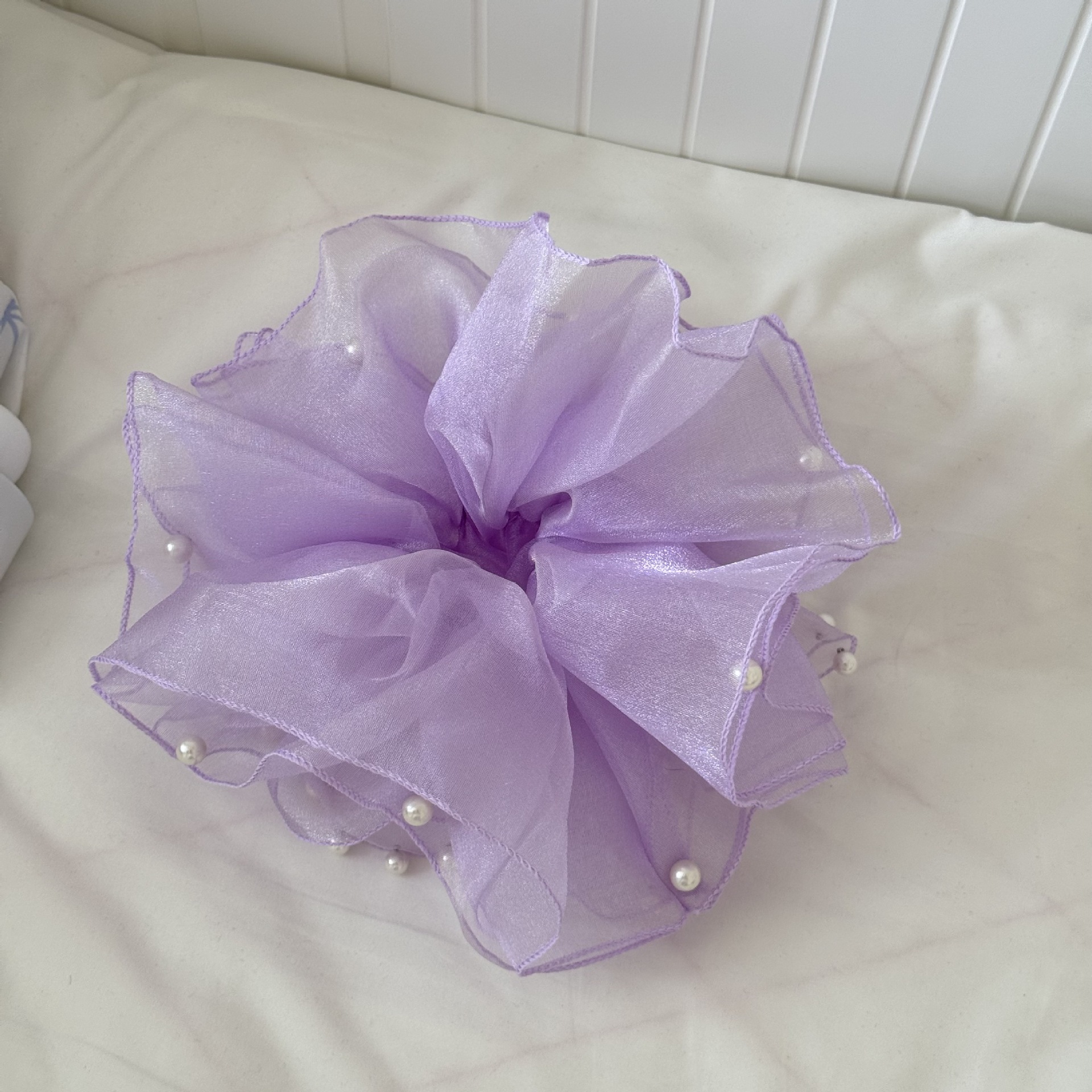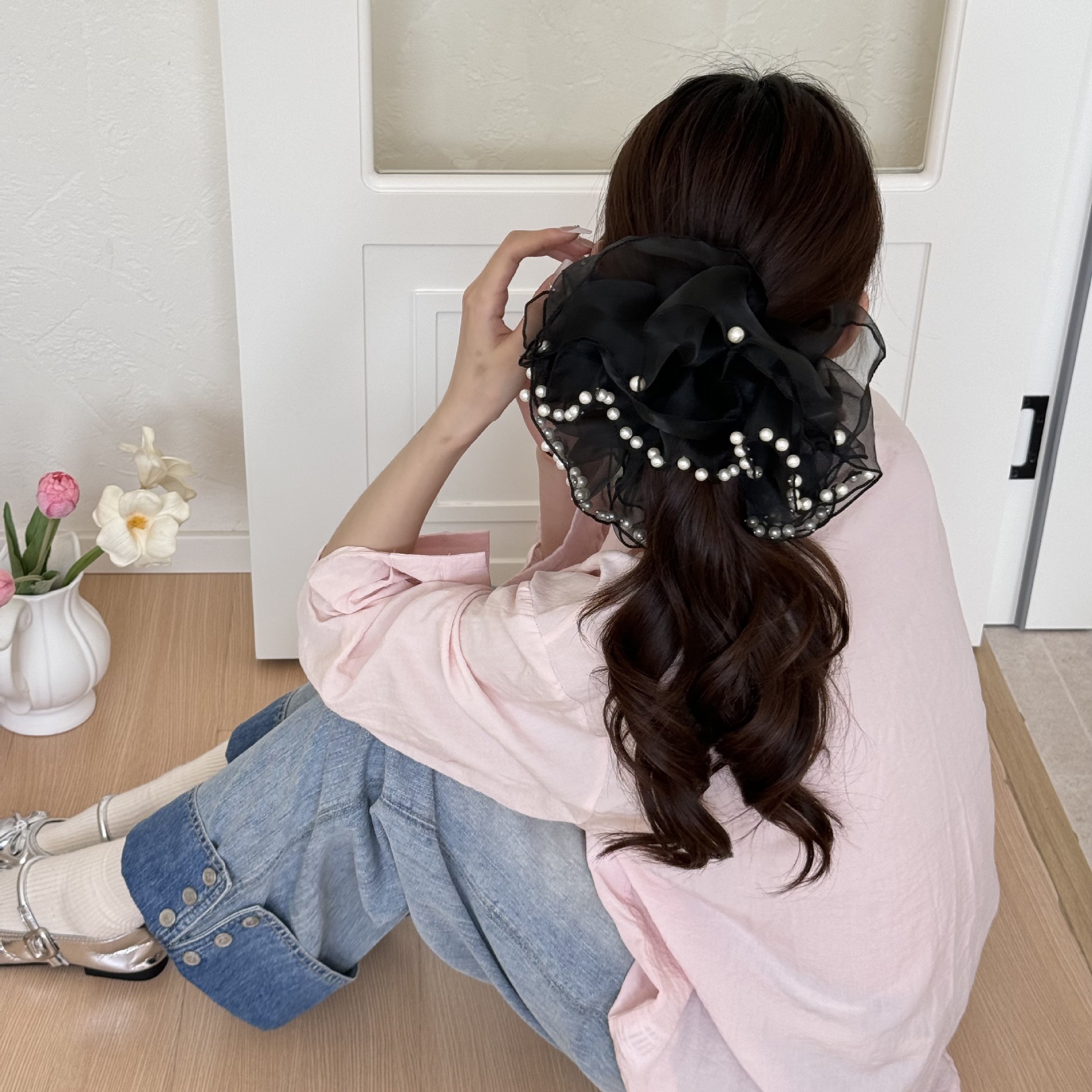 여성용 프렌치 햅번 베이지색 진주 메쉬 머리끈, 고급 볼 헤어끈, 포니테일 머리띠스토어 가기