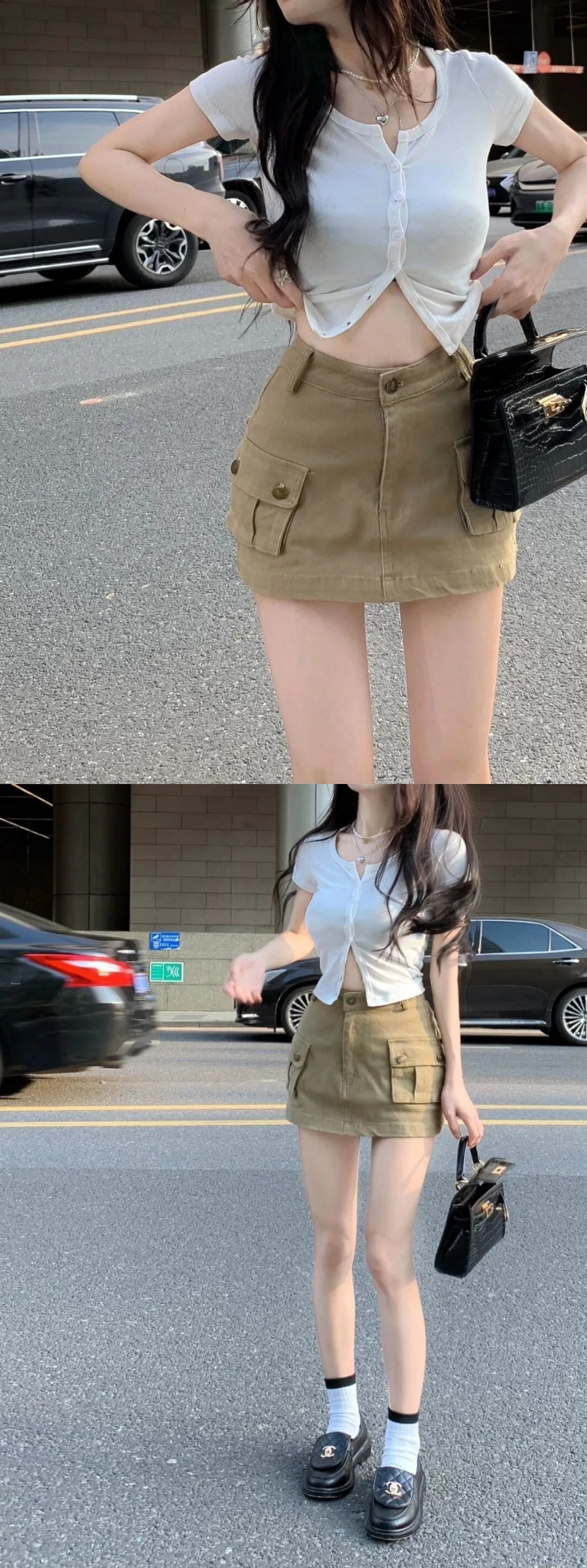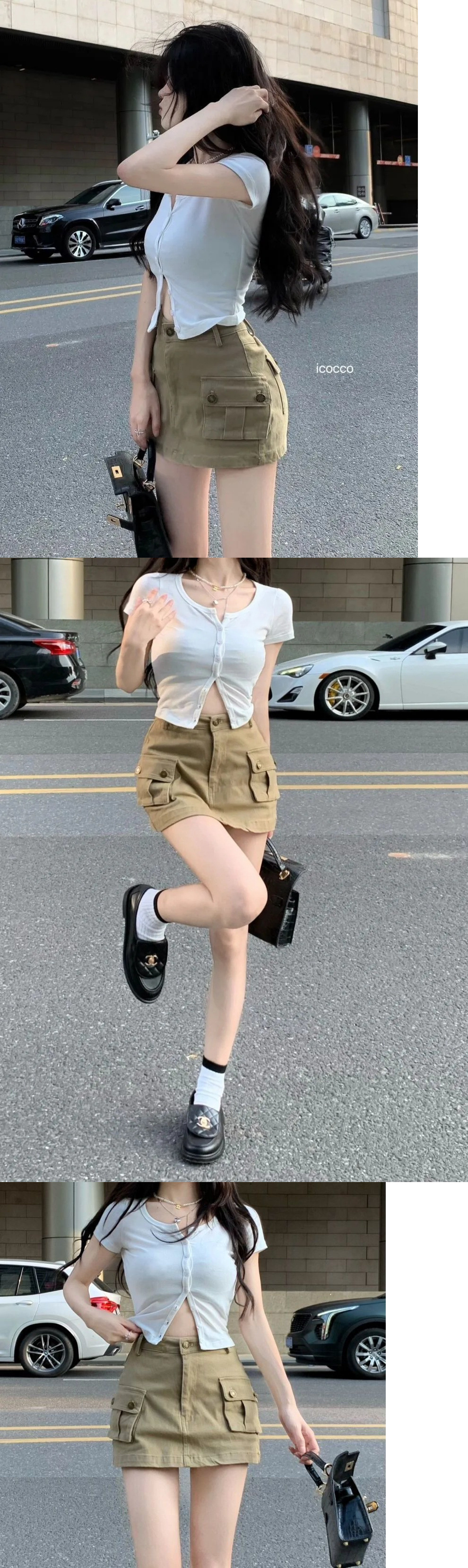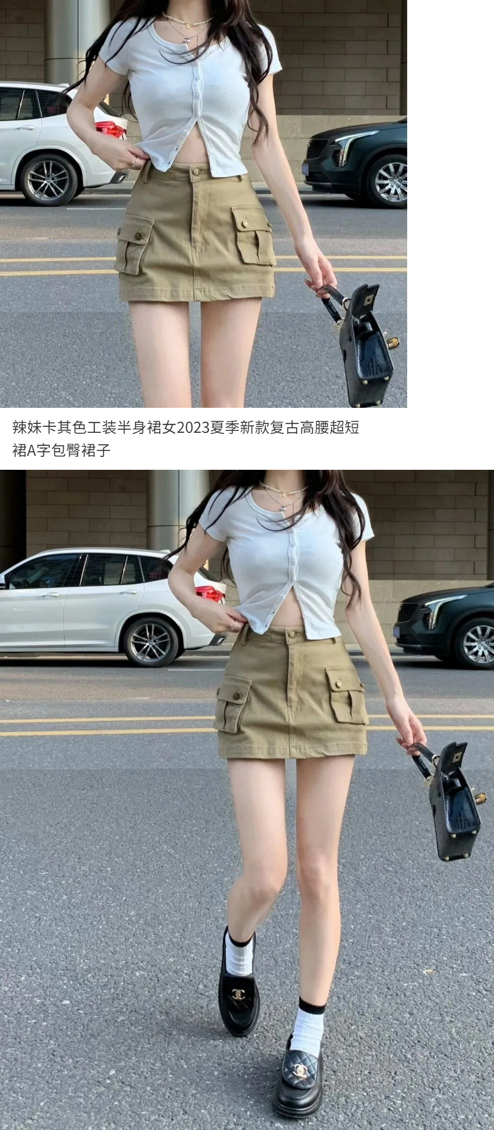 핫걸 카키색 작업복 스커트 여성 2025 여름 신작 레트로 하이웨이스트 미니 스커트 A라인 힙 스커트스토어 가기