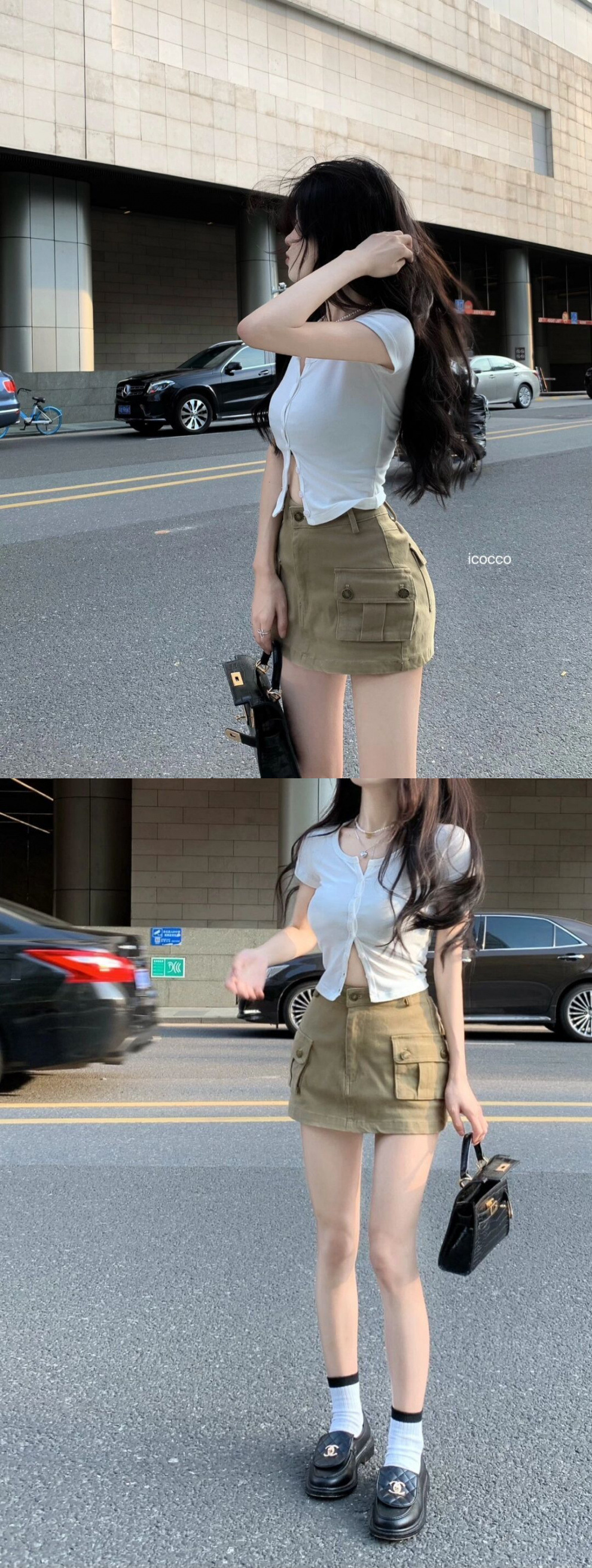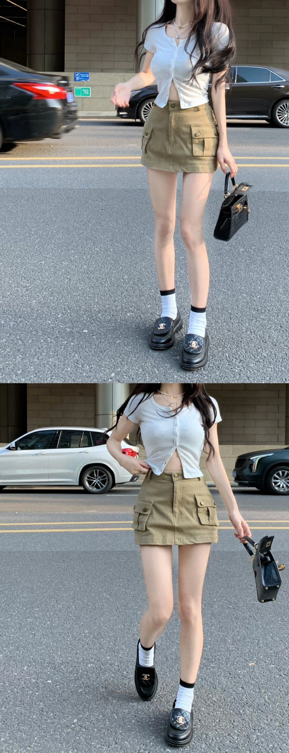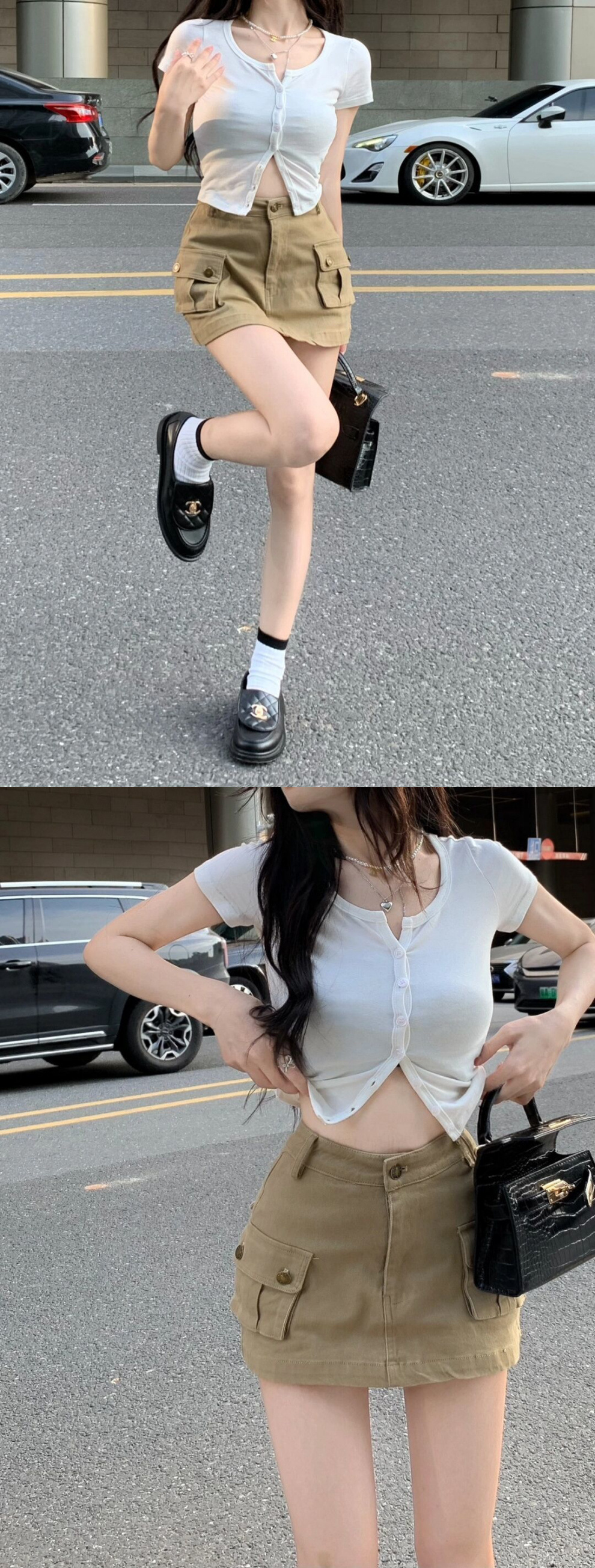 핫걸 카키색 작업복 스커트 여성 2025 여름 신작 레트로 하이웨이스트 미니 스커트 A라인 힙 스커트스토어 가기