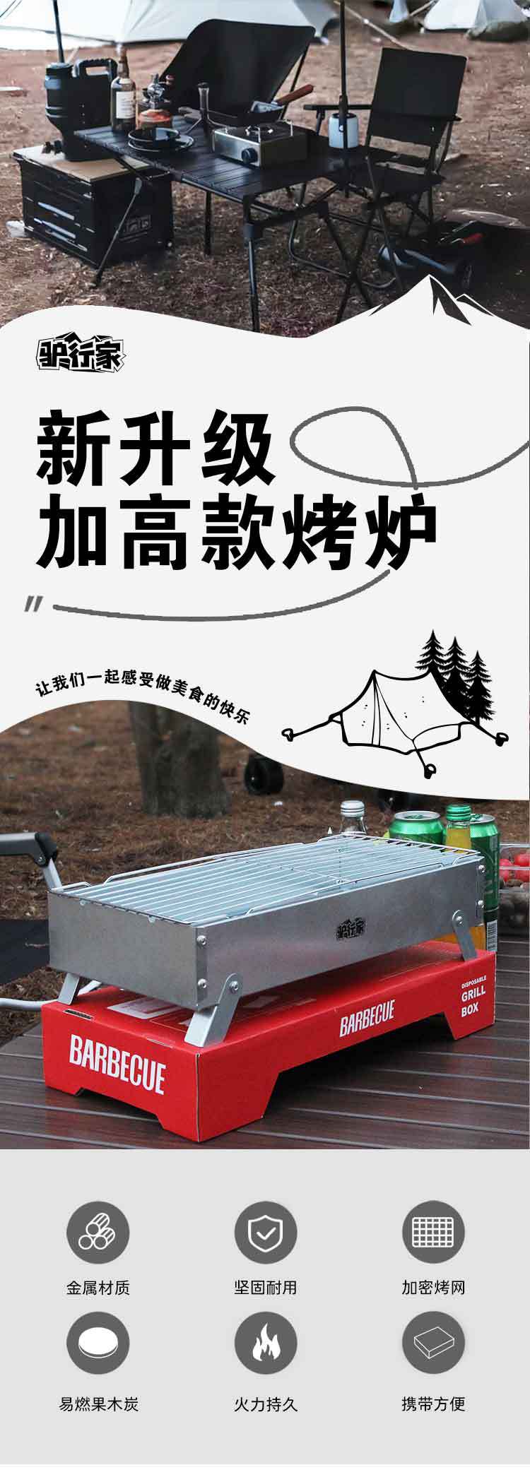 Donkey Expert 야외 일회용 바베큐 그릴 두꺼운 탄소강 숯 트레이 바베큐 그릴 빠른 연소 숯 강화 오븐스토어 가기