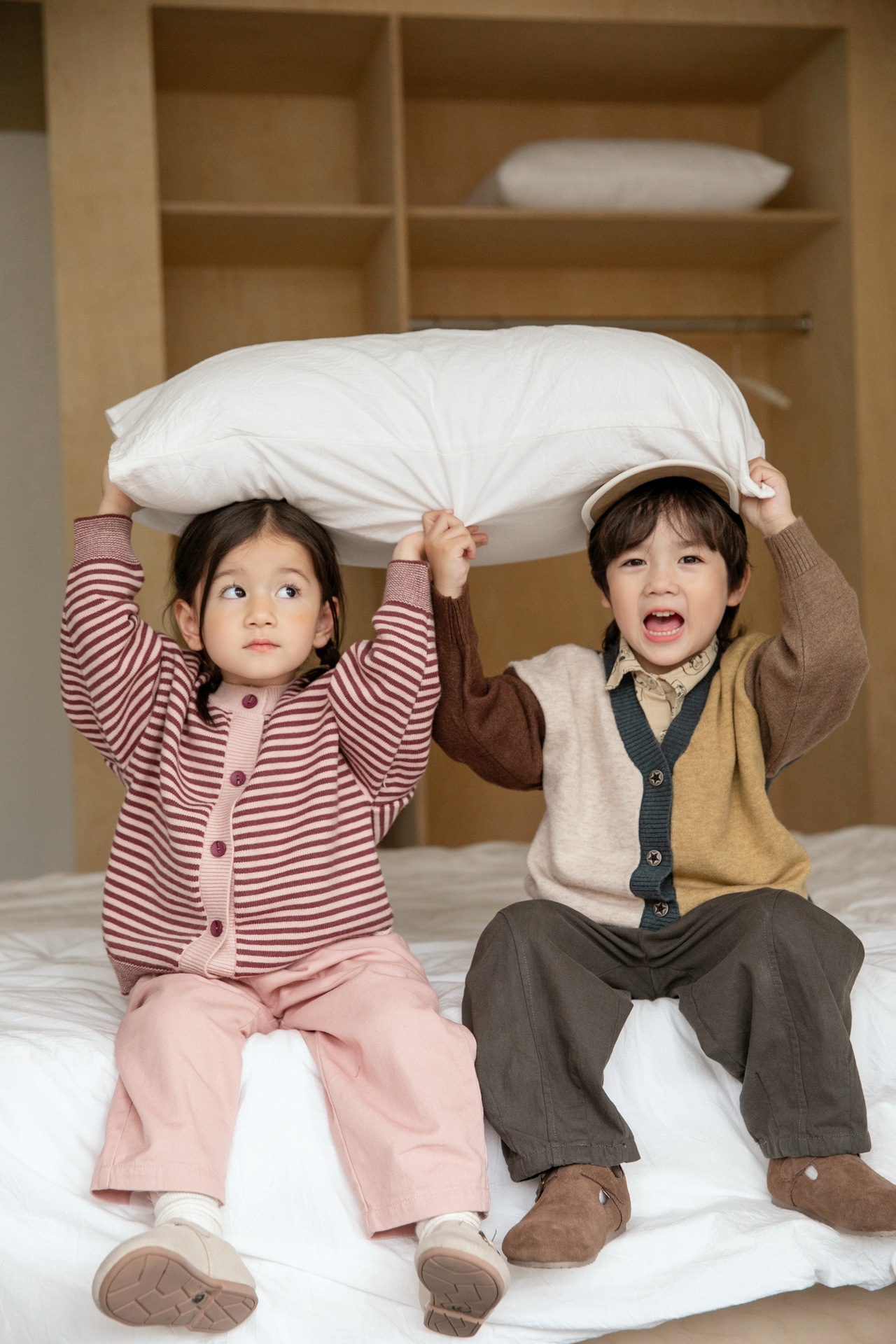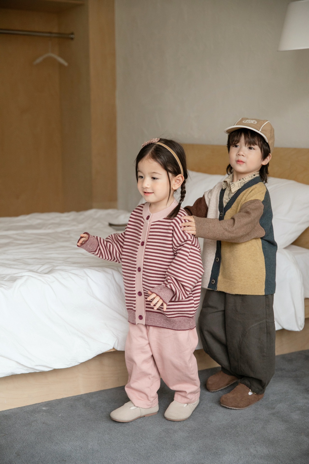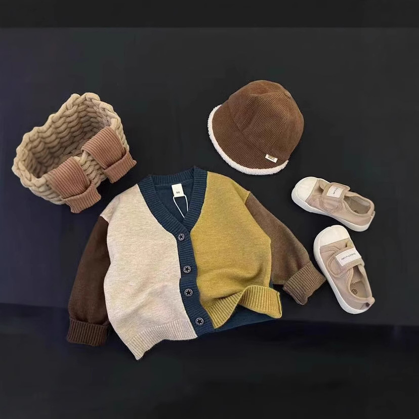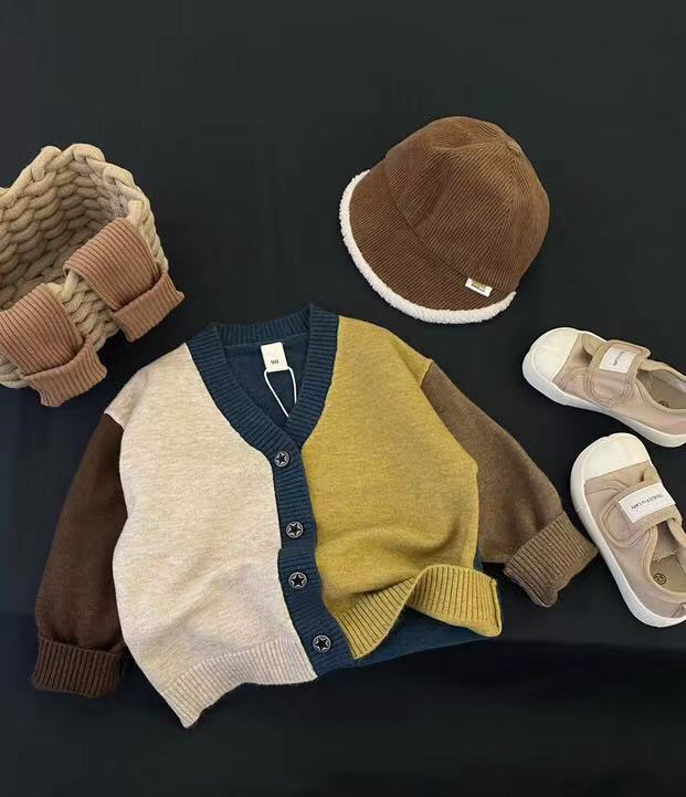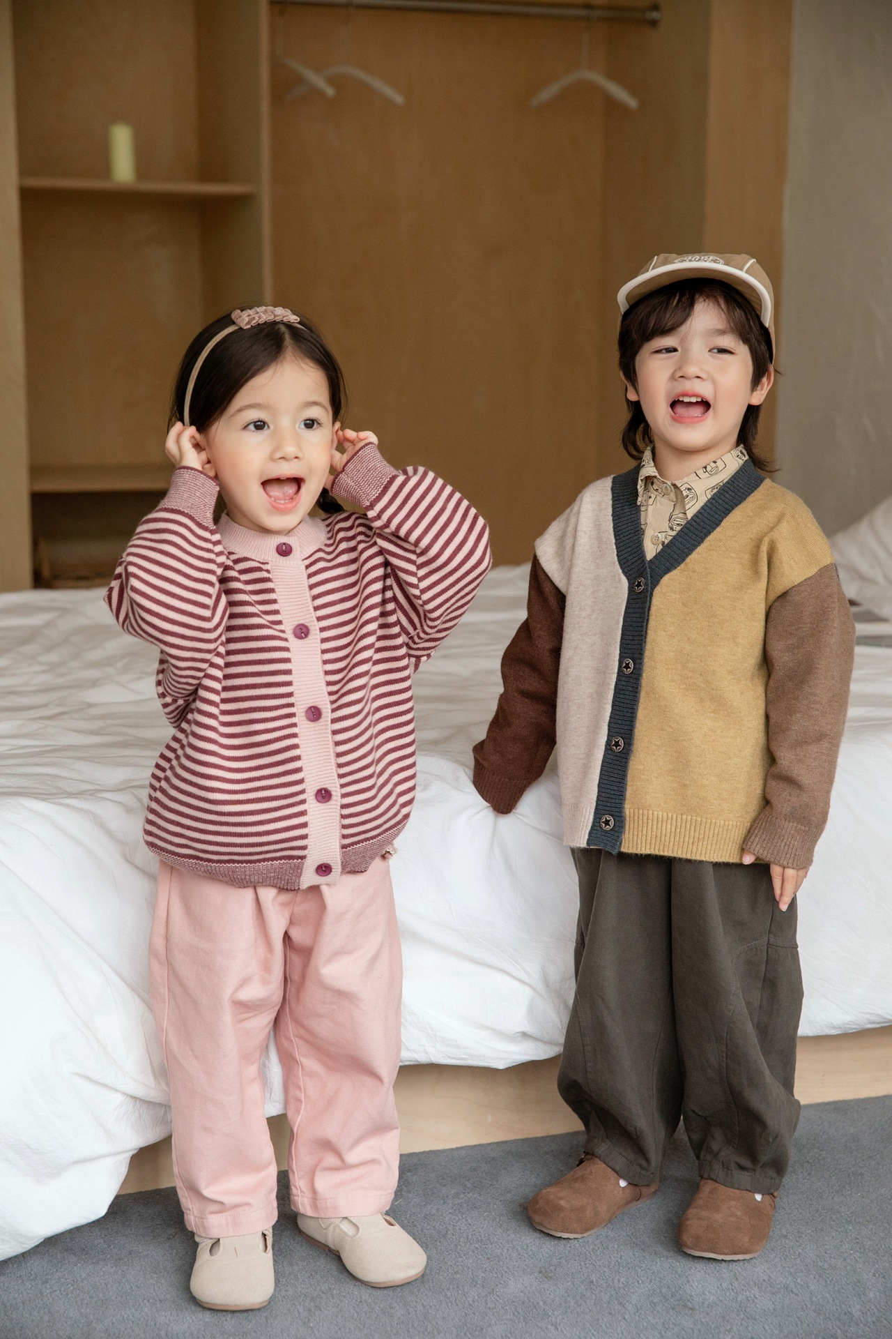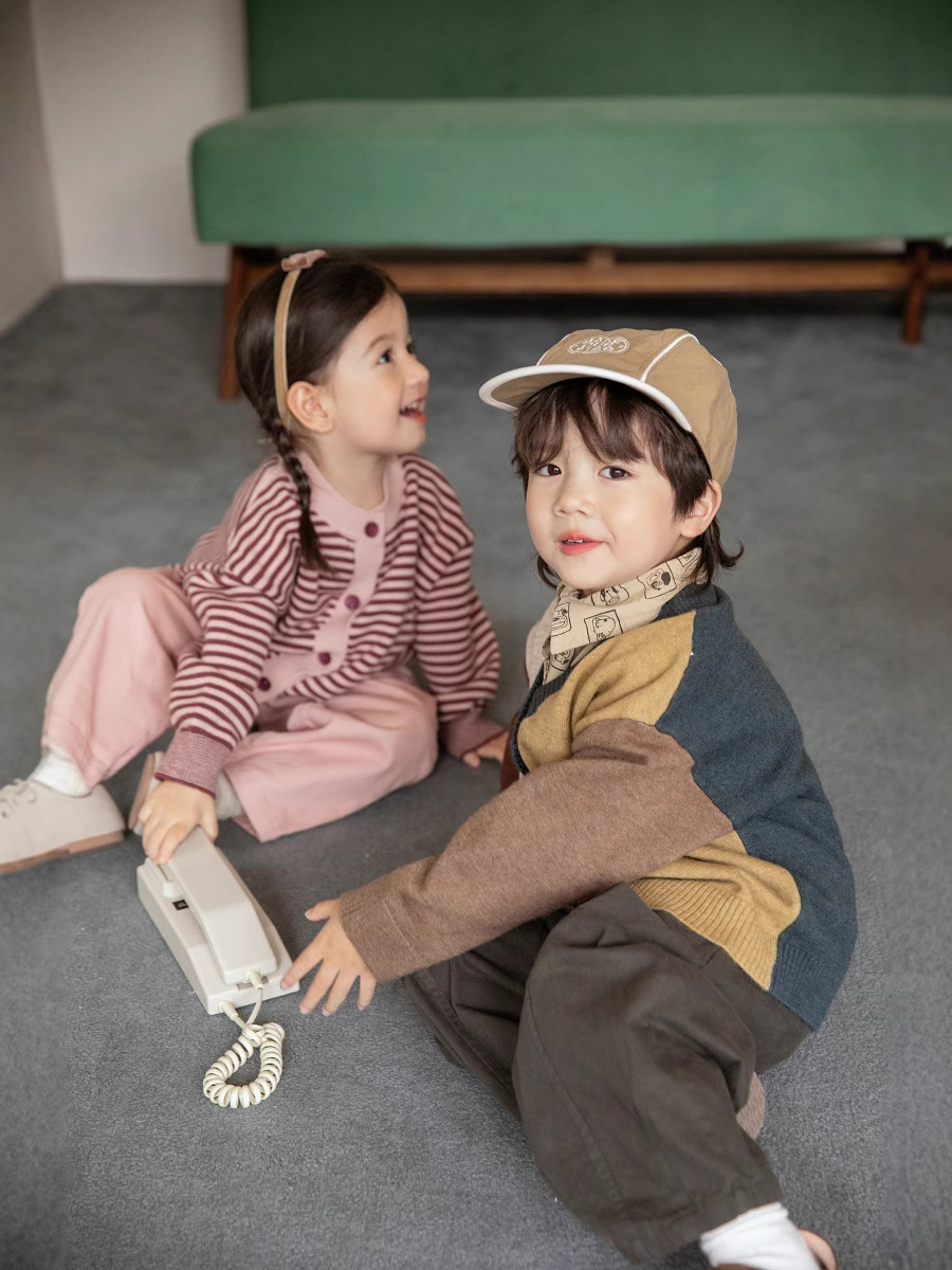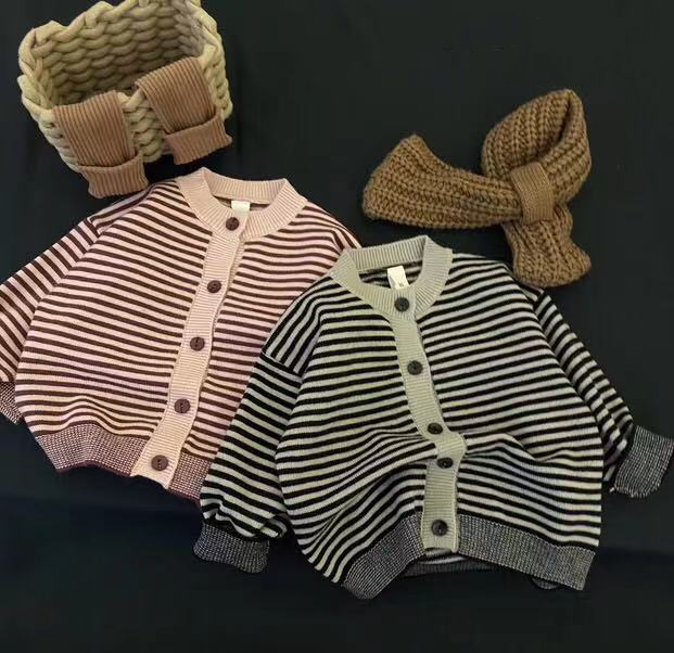 가을 새 여자 아기 스웨터 카디건 2025 고품질 중소형 아동복 스트라이프 대비 색상 스웨터 탑스토어 가기