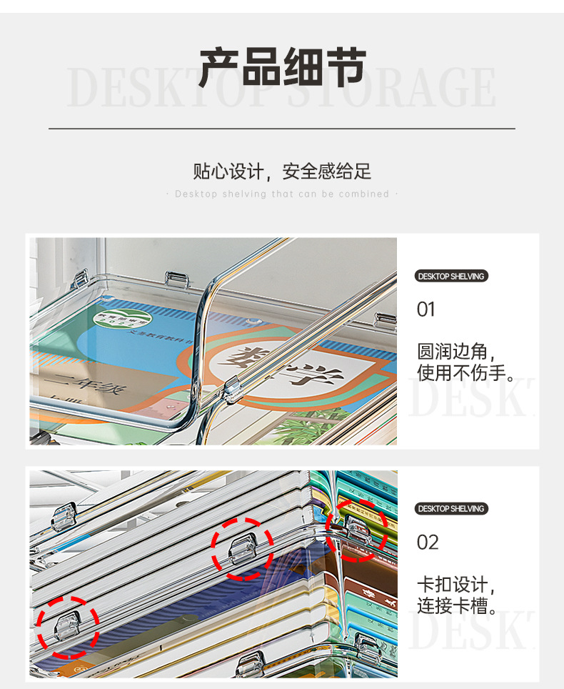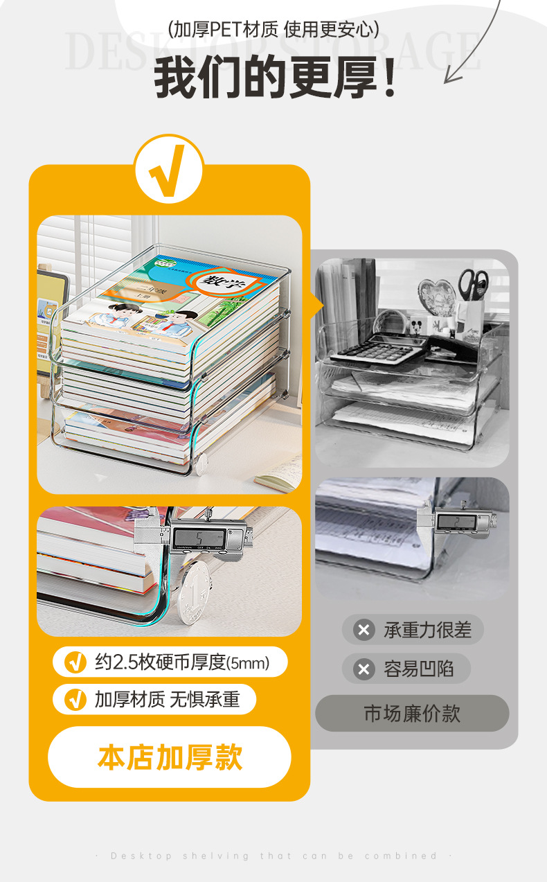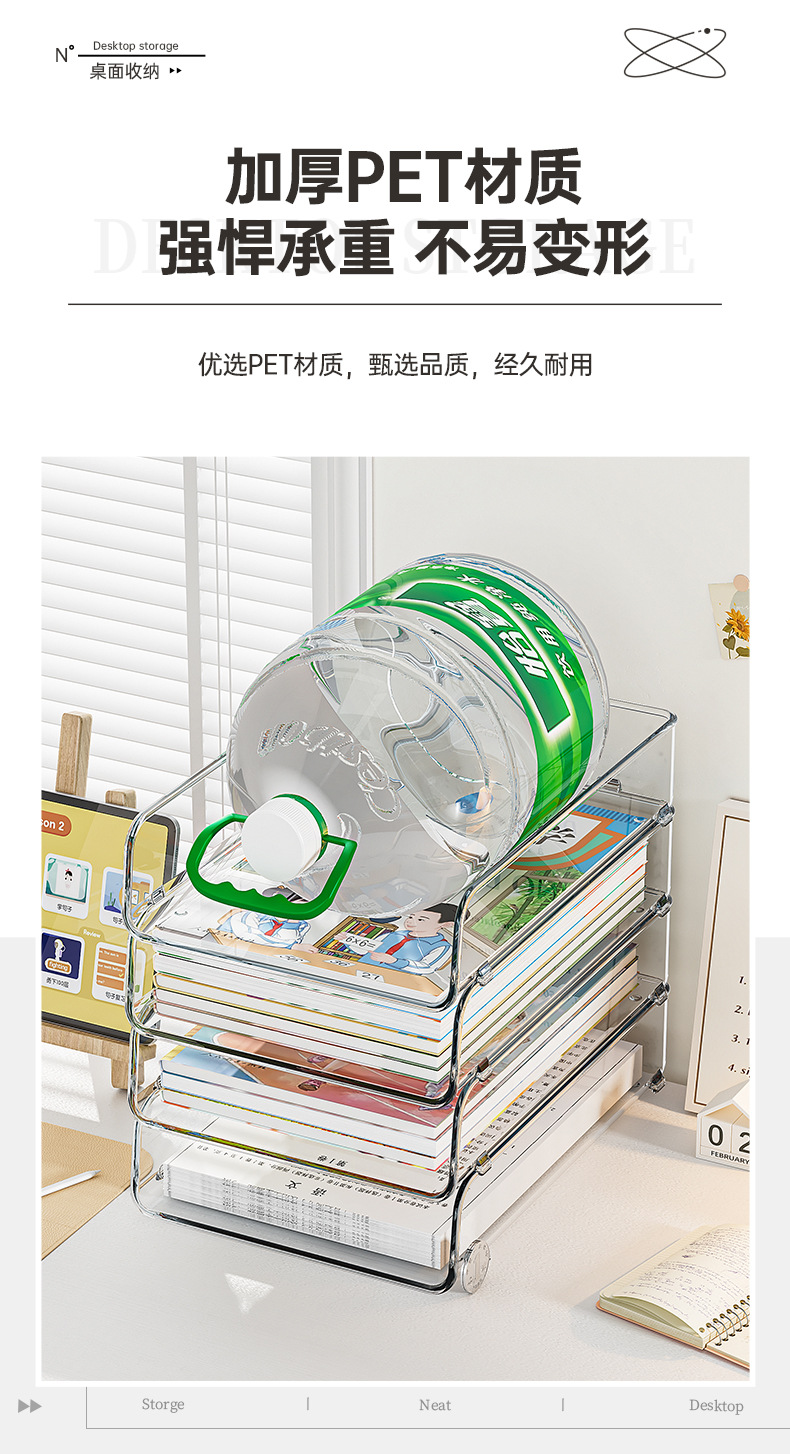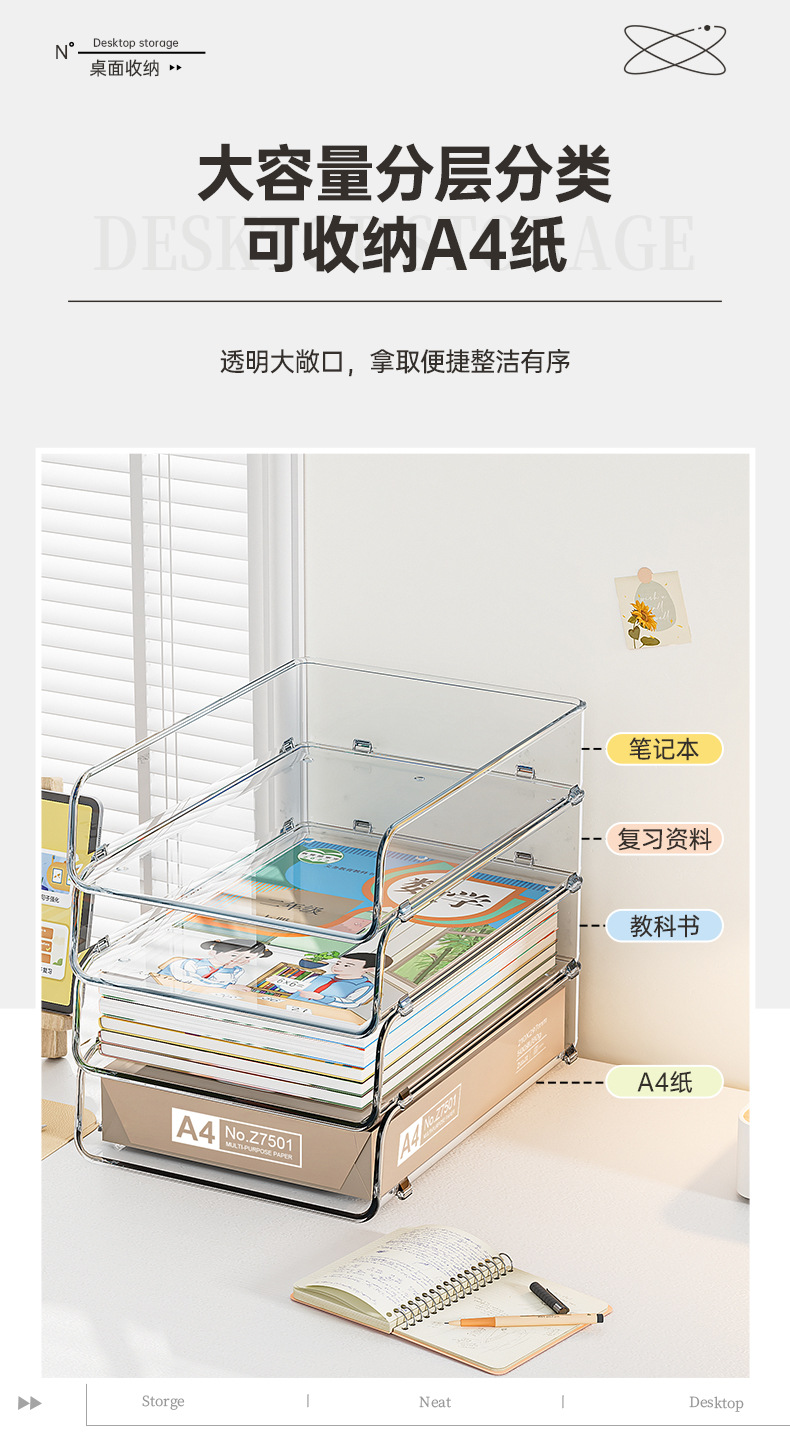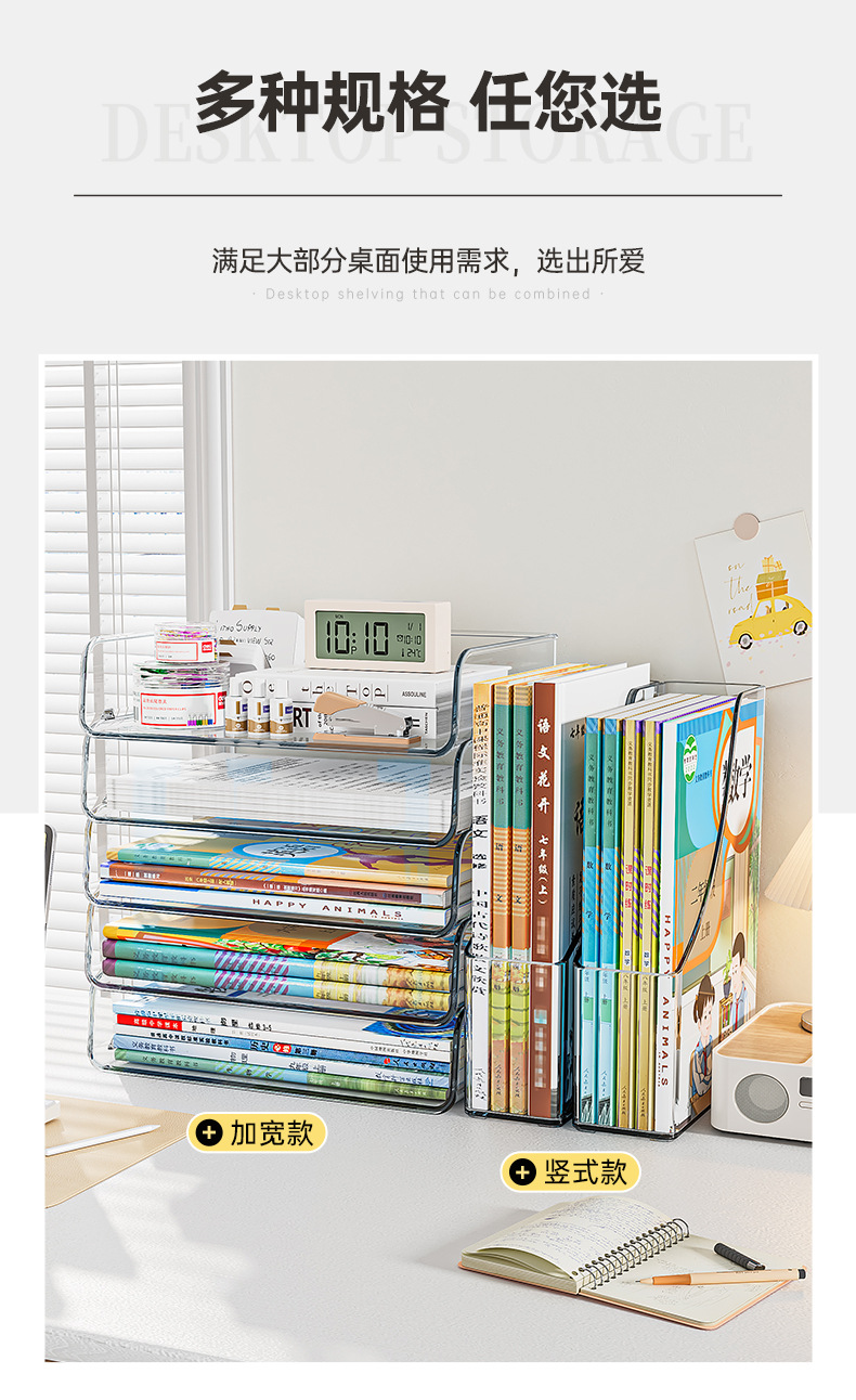 데스크탑 스토리지 랙 파일 스토리지 데스크 랙 학습 도서 스토리지 박스 직사각형 다층 투명 정리 상자스토어 가기