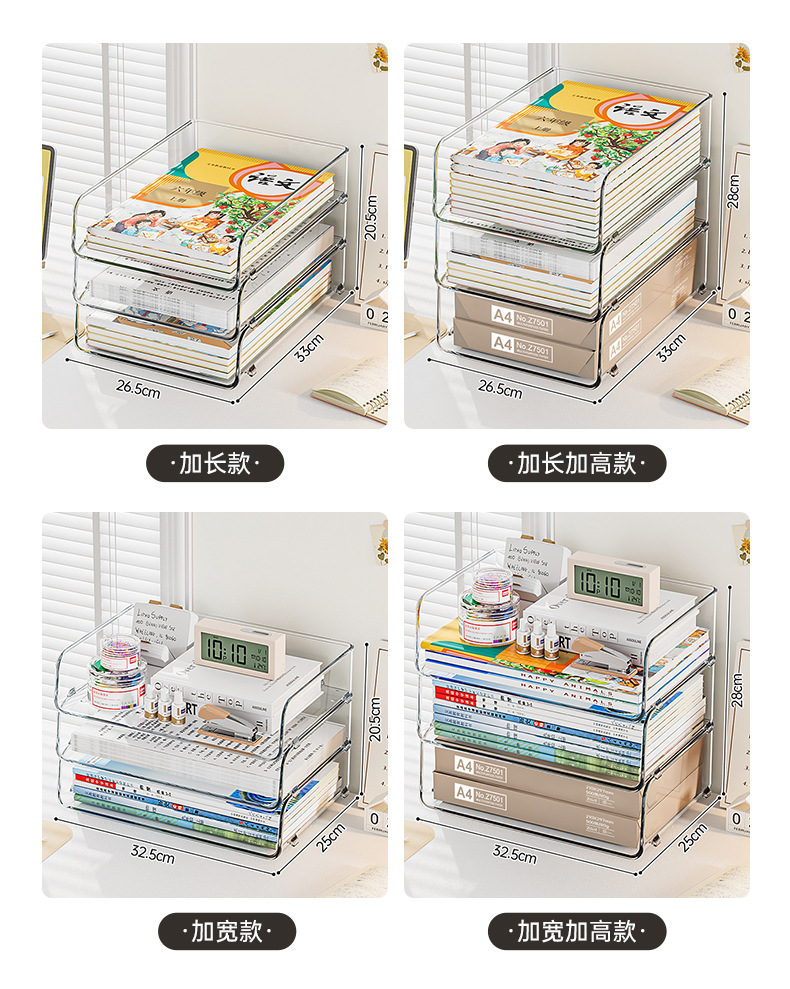 데스크탑 스토리지 랙 파일 스토리지 데스크 랙 학습 도서 스토리지 박스 직사각형 다층 투명 정리 상자