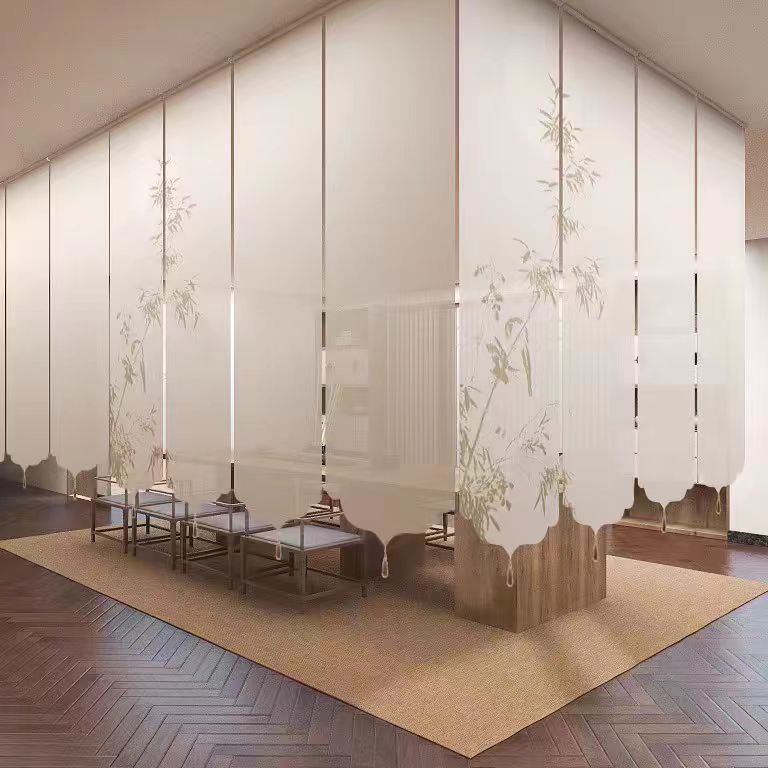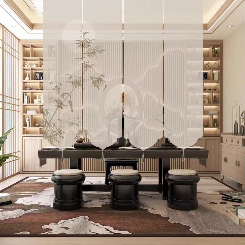 새로운 중국 스타일 선 스타일 롤러 블라인드 커튼 거실 찻집 입구 스크린 커튼 파티션 커튼 교수형 장식 도어 커튼 잉크 대나무스토어 가기