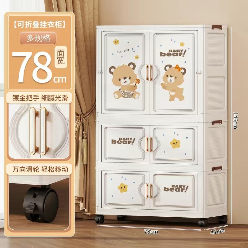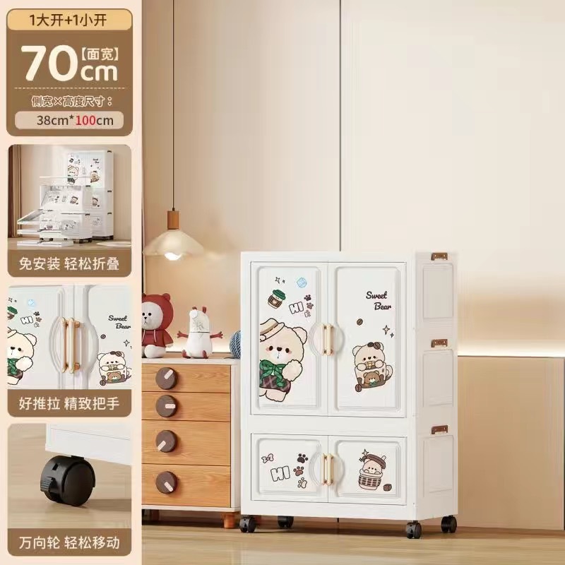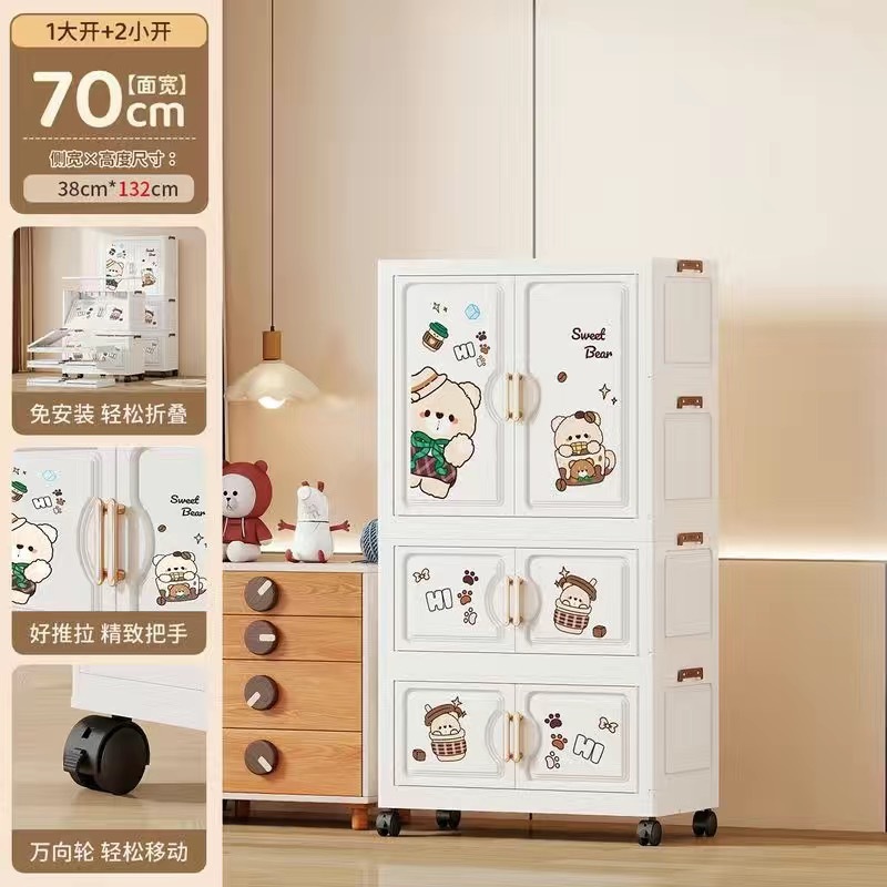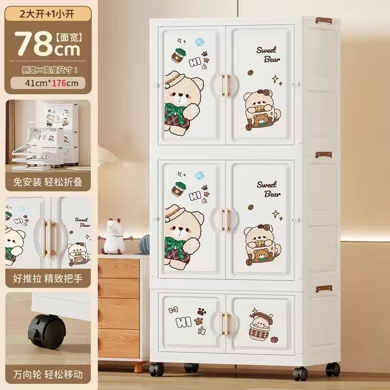 만화 접이식 양문 옷장 가정용 설치가 필요없는 다층 아동 의류 보관 캐비닛 장난감 보관 캐비닛스토어 가기