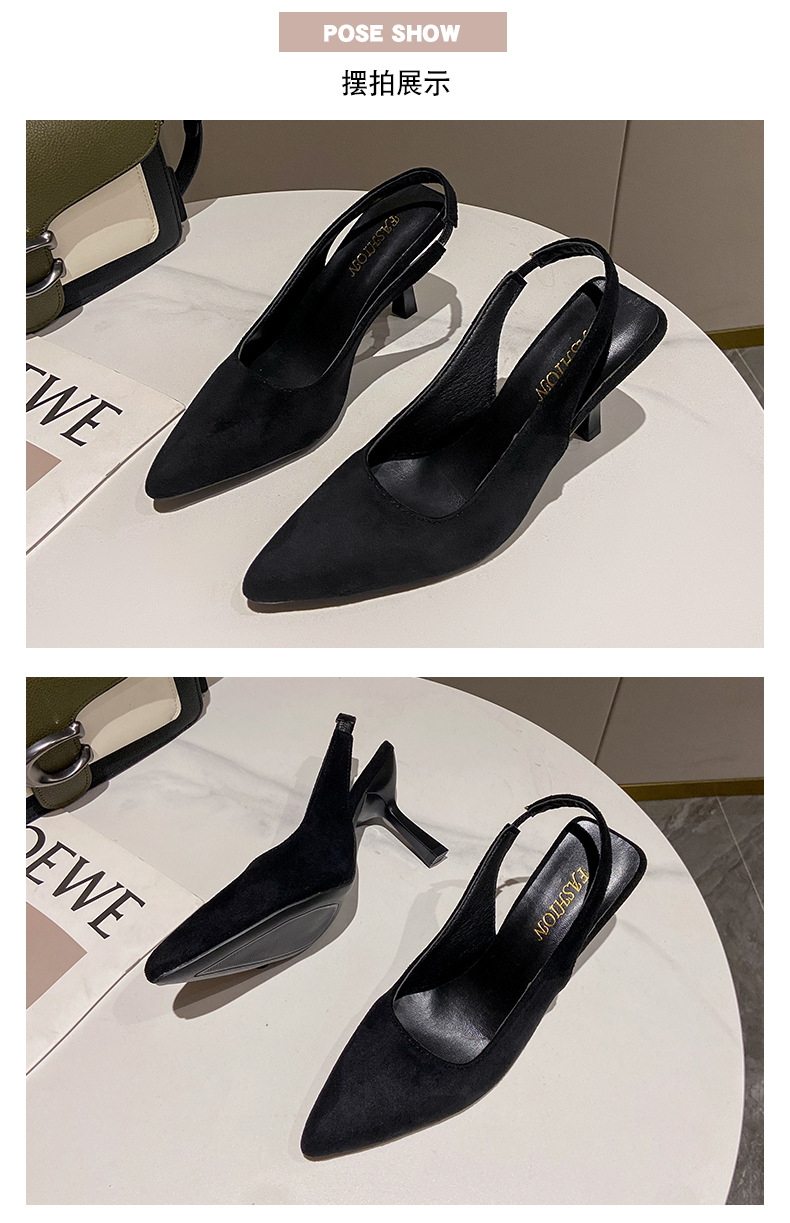 플러스 사이즈 대외 무역 여성 신발 2025 뚱뚱한 발 발가락 뒤에 빈 스틸레토 샌들 여성 여름 섹시한 뾰족한 검은 하이힐스토어 가기