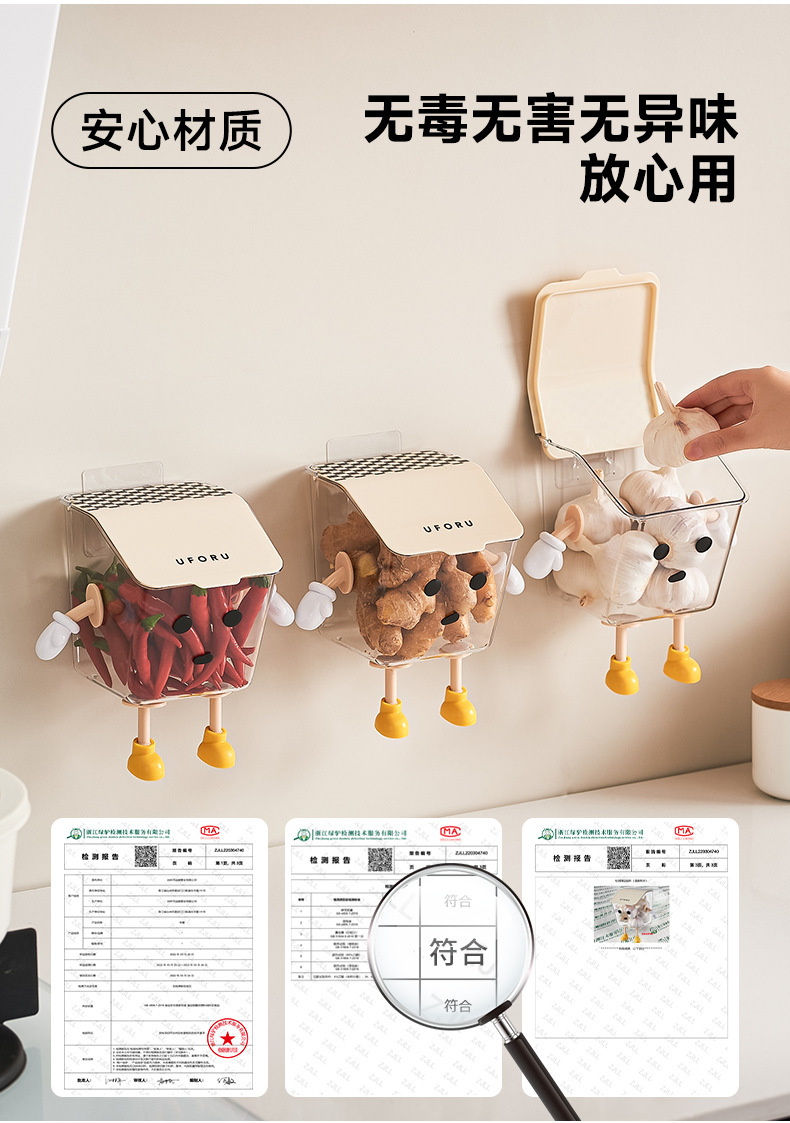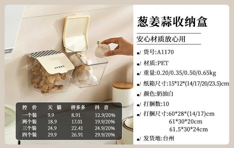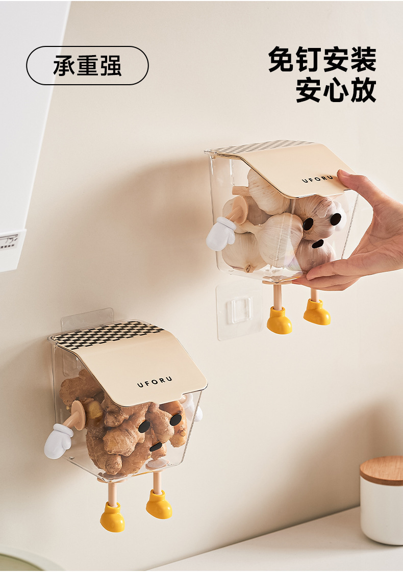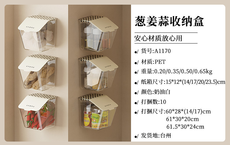 양파, 생강, 마늘 보관함, 식품 등급 벽걸이형 보관함, 펀치 없는 벽걸이 바구니, 생강 마늘 조미료 보관 바구니스토어 가기