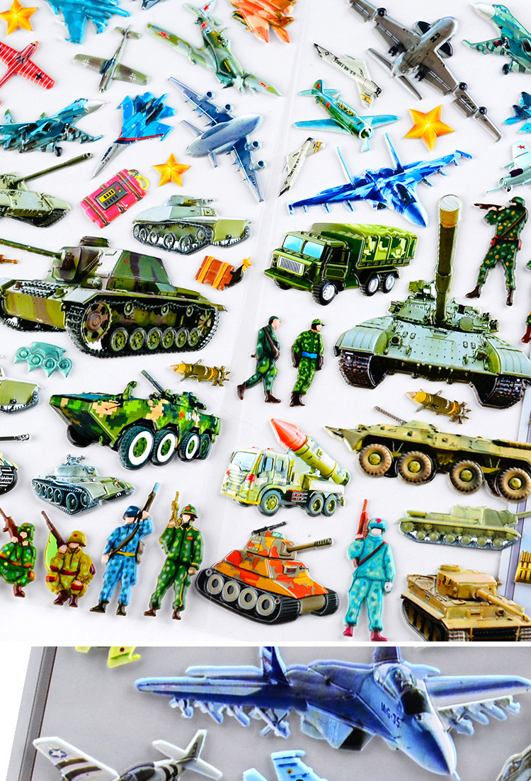 어린이 스티커 비행기 탱크 총기 무기 입체 버블 스티커 소년 아기 보상 스티커 교육 장난감스토어 가기
