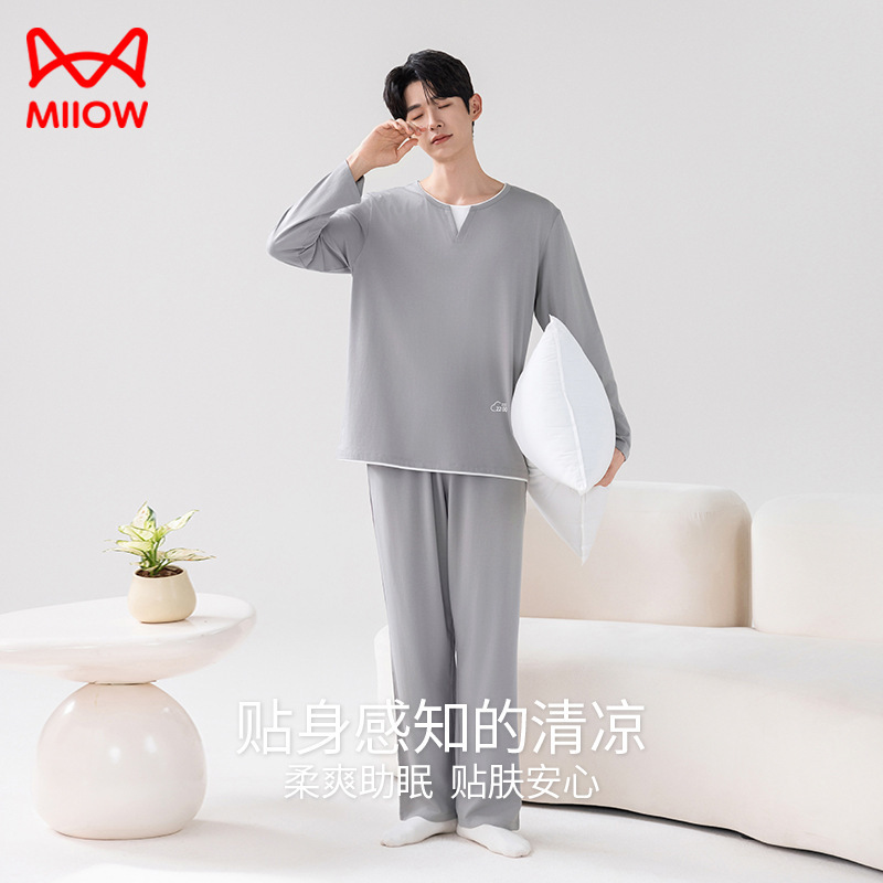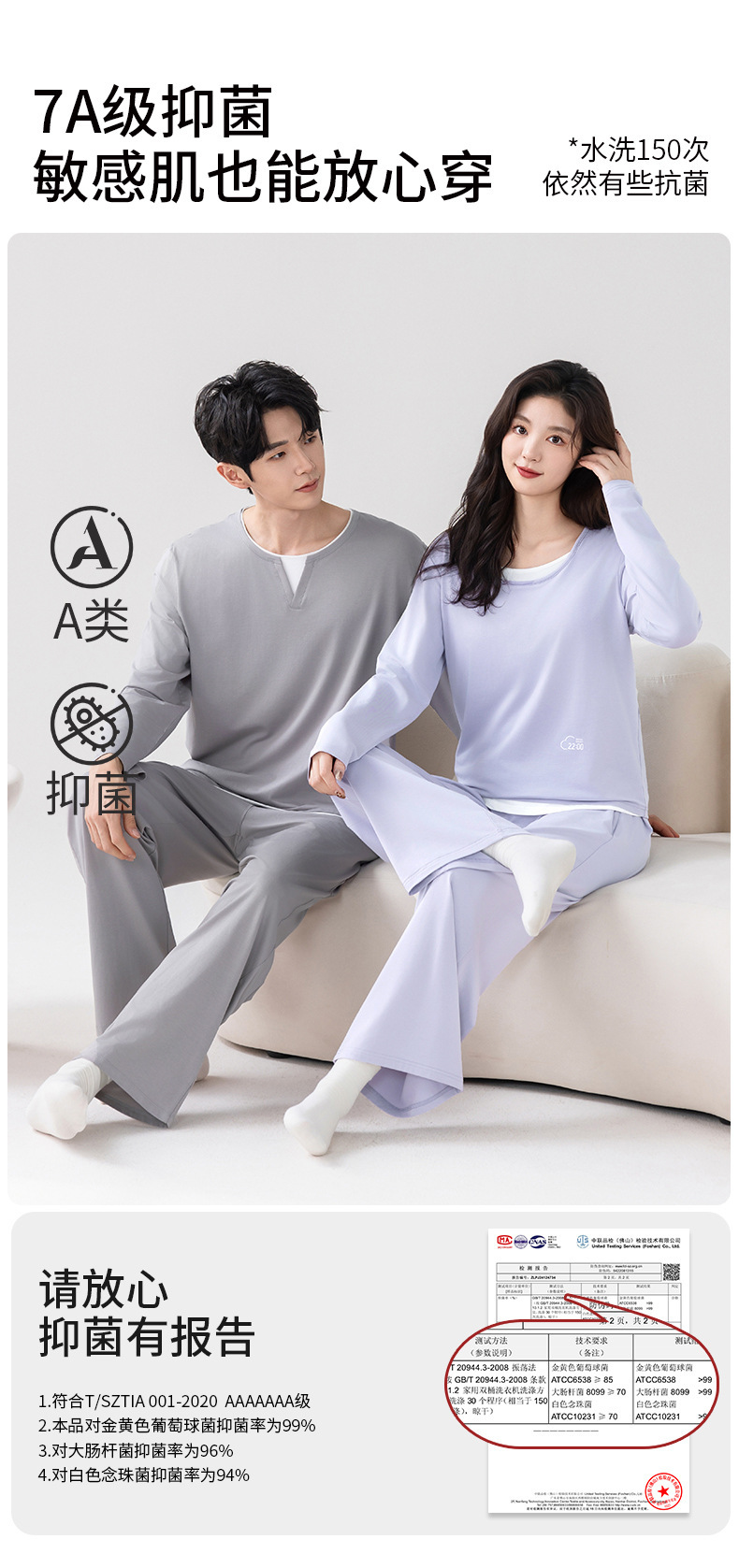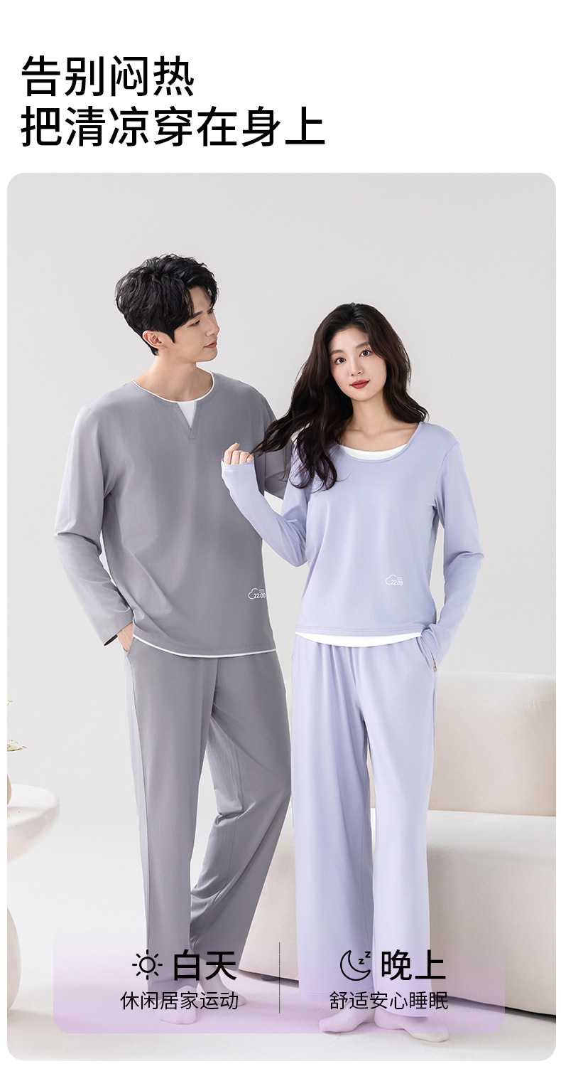 대나무 섬유 커플 홈웨어 여성 봄, 가을 긴팔 잠옷 남성 캐주얼 홈웨어 외부 착용 가능스토어 가기