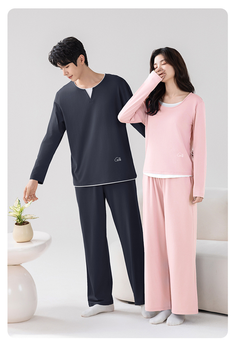 대나무 섬유 커플 홈웨어 여성 봄, 가을 긴팔 잠옷 남성 캐주얼 홈웨어 외부 착용 가능