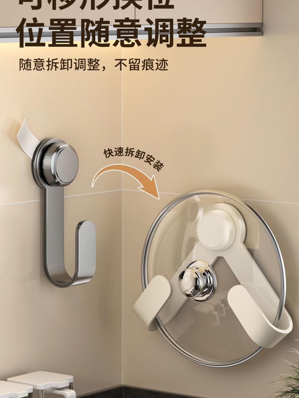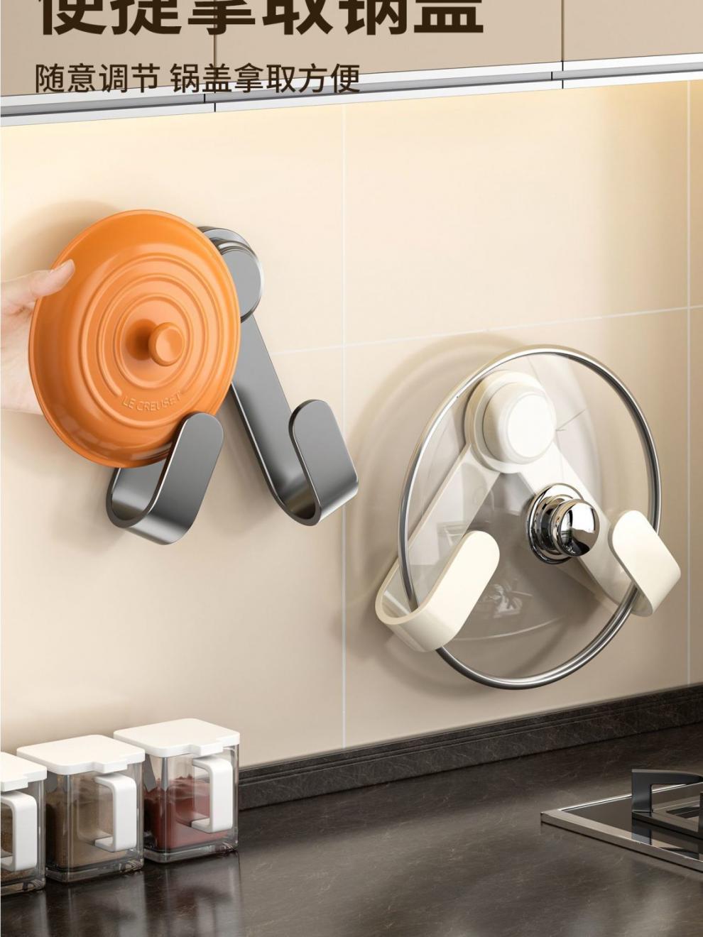 Jibaiju 두꺼운 탄소강 주방 냄비 뚜껑 랙 다기능 벽 도마 보관 유물 펀치없는 보관 랙스토어 가기