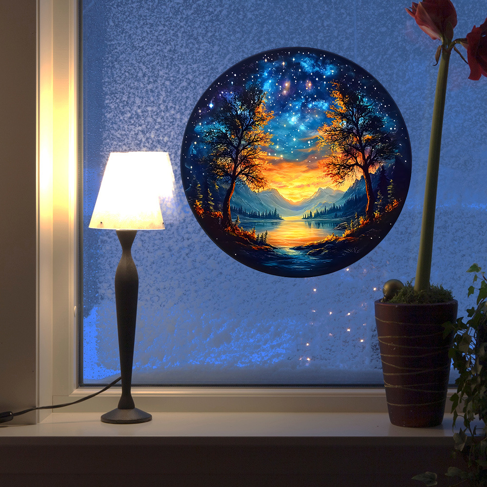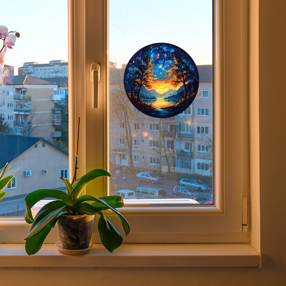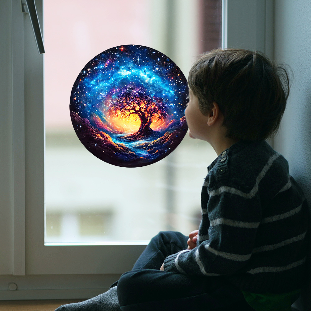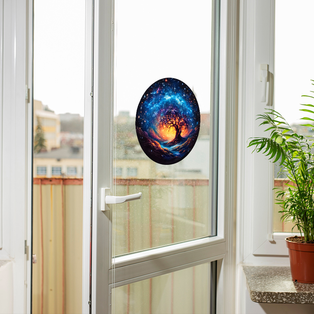 대외 무역 창조적 인 생명의 나무 꿈꾸는 별이 빛나는 하늘 홈 유리 창 미화 장식 정전기 uv 창 스티커 도매 접착제 없음