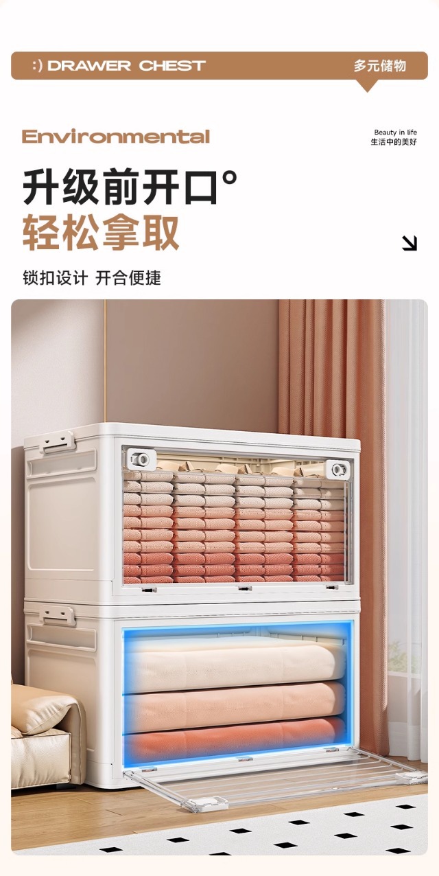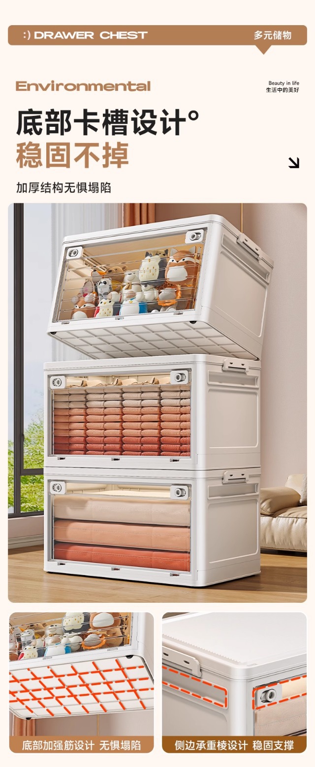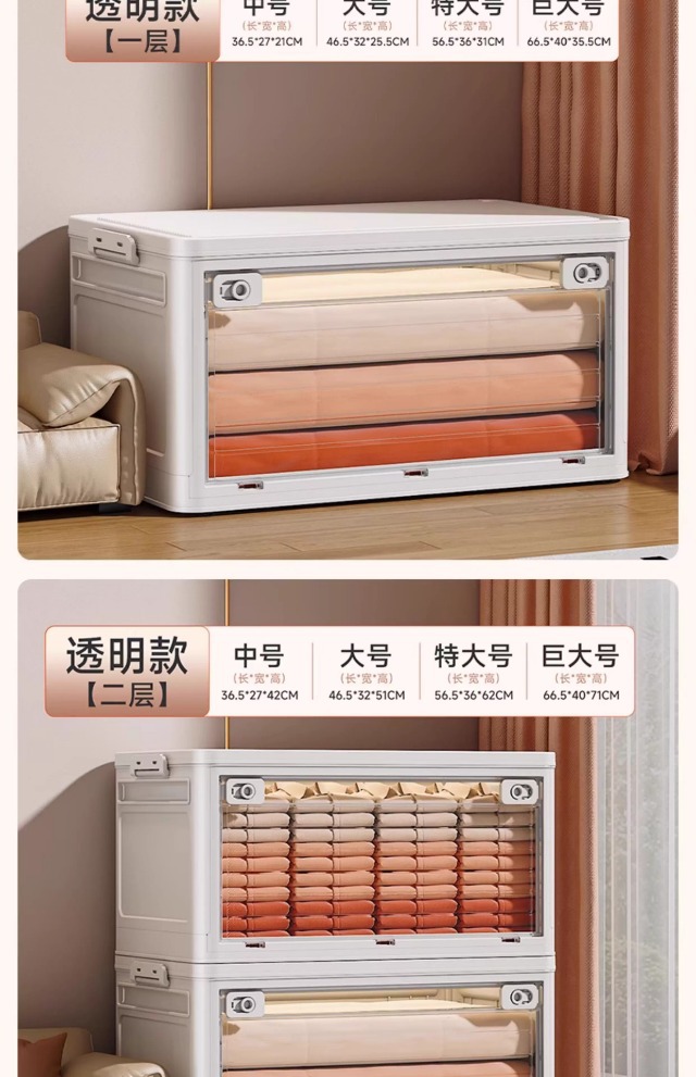 접이식 옷 보관 상자 가정용 옷장 보관 및 정리 상자 대용량 초대형 플라스틱 의류 보관 상자