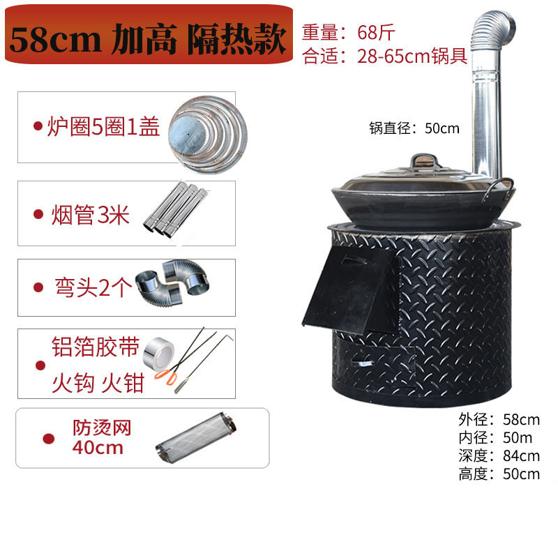 • 단열 클래식 올드 스타일 58cm+ 3m 연기 파이프+ 액세서리+50cm 냄비+뚜껑