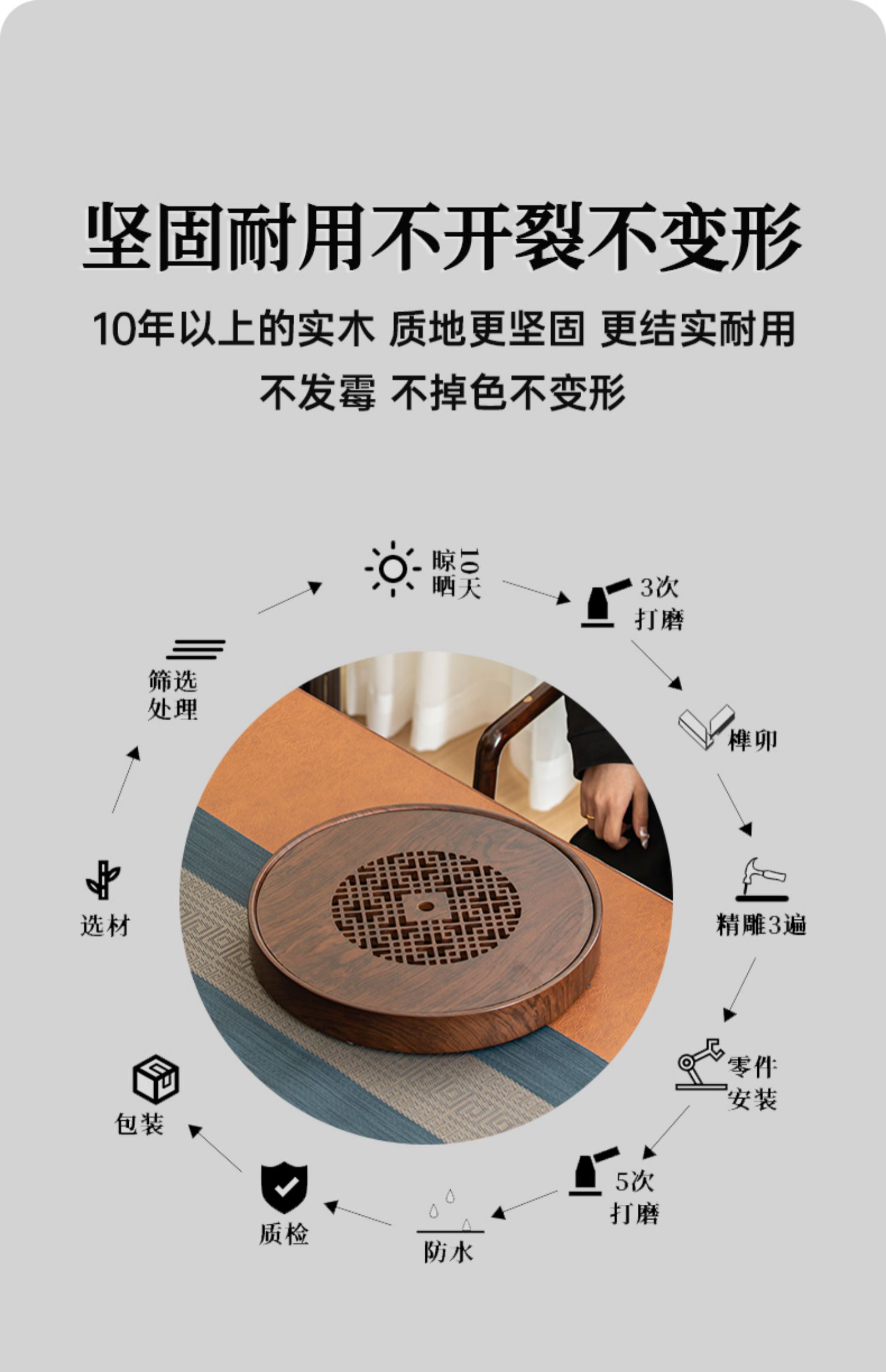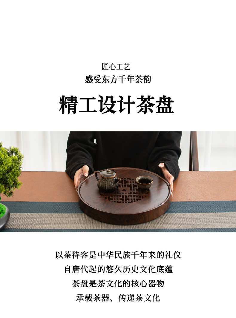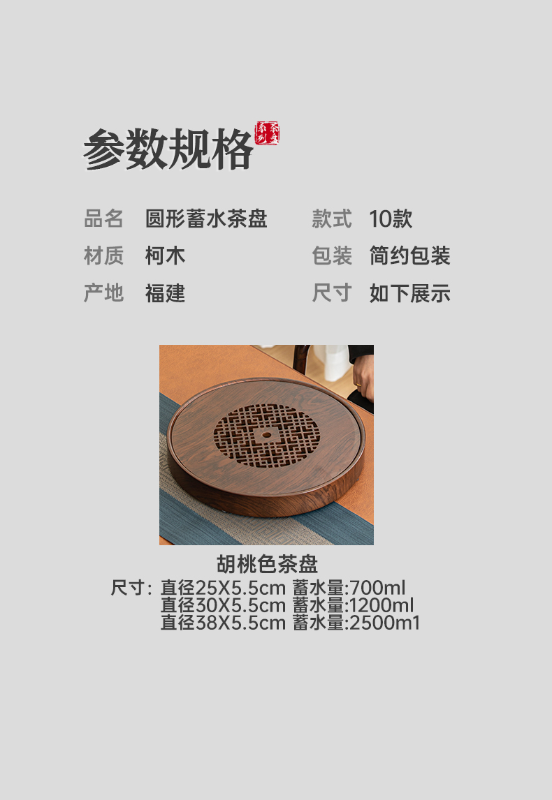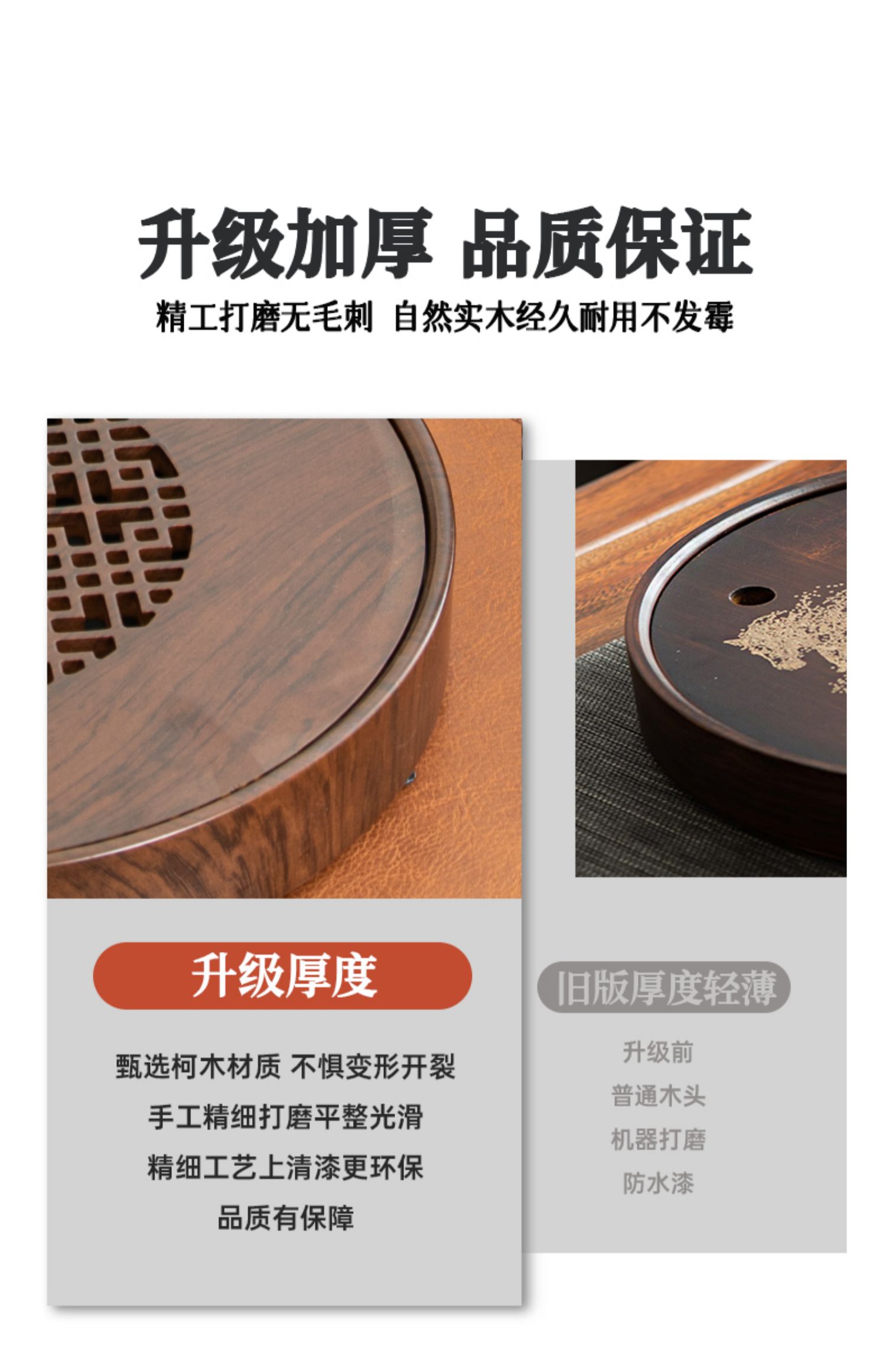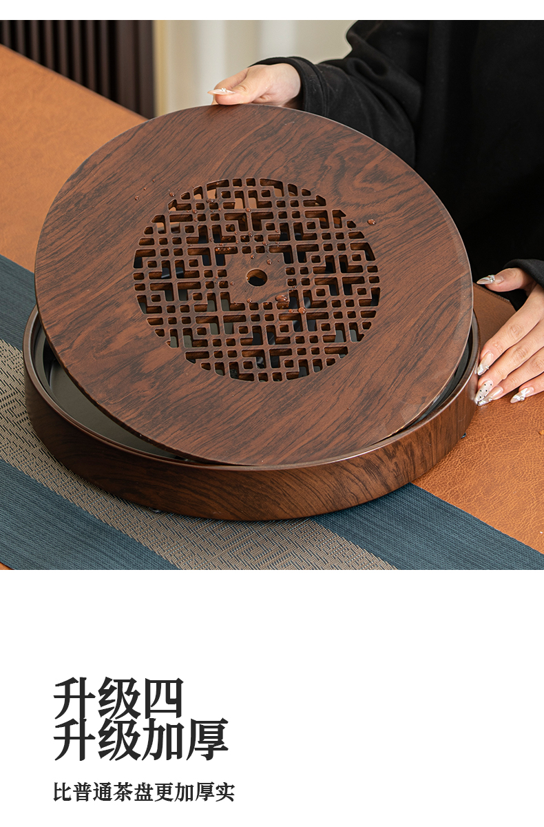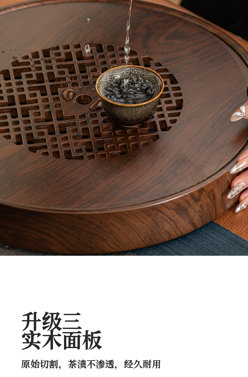 ✅ 2025 새로운 차 트레이 가정용 작은 차 테이블 차 트레이 물 저장 차 세트 라운드 로즈 우드 컬러 단단한 나무 건조 버블스토어 가기