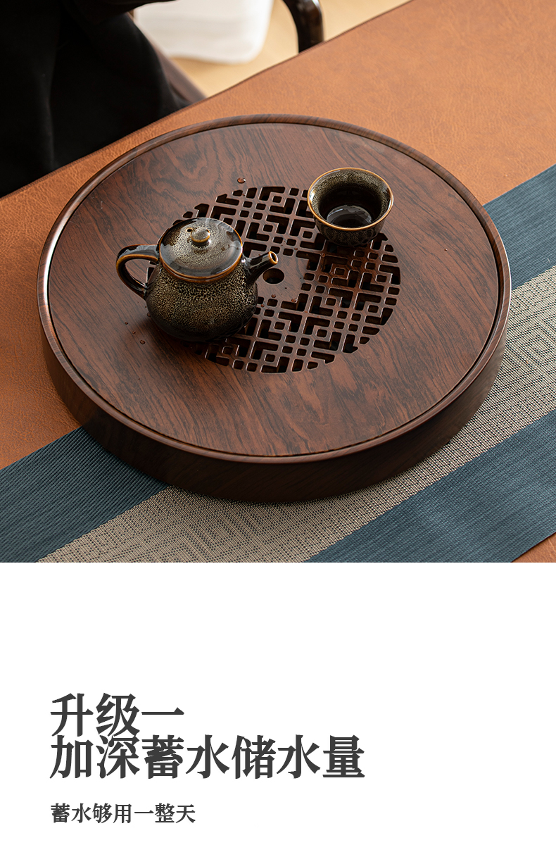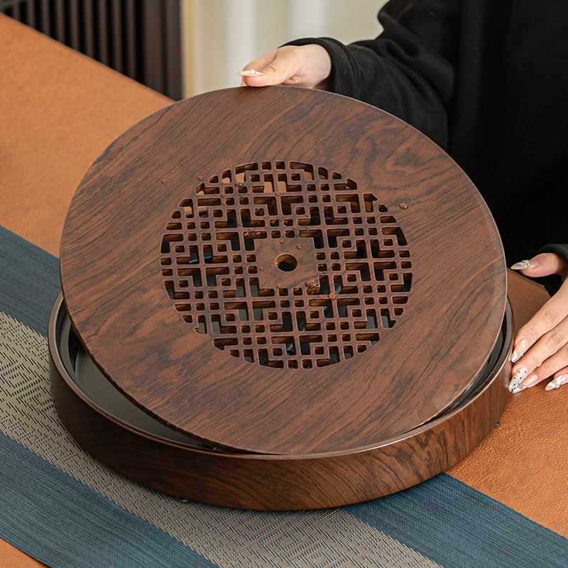 ✅ 2025 새로운 차 트레이 가정용 작은 차 테이블 차 트레이 물 저장 차 세트 라운드 로즈 우드 컬러 단단한 나무 건조 버블