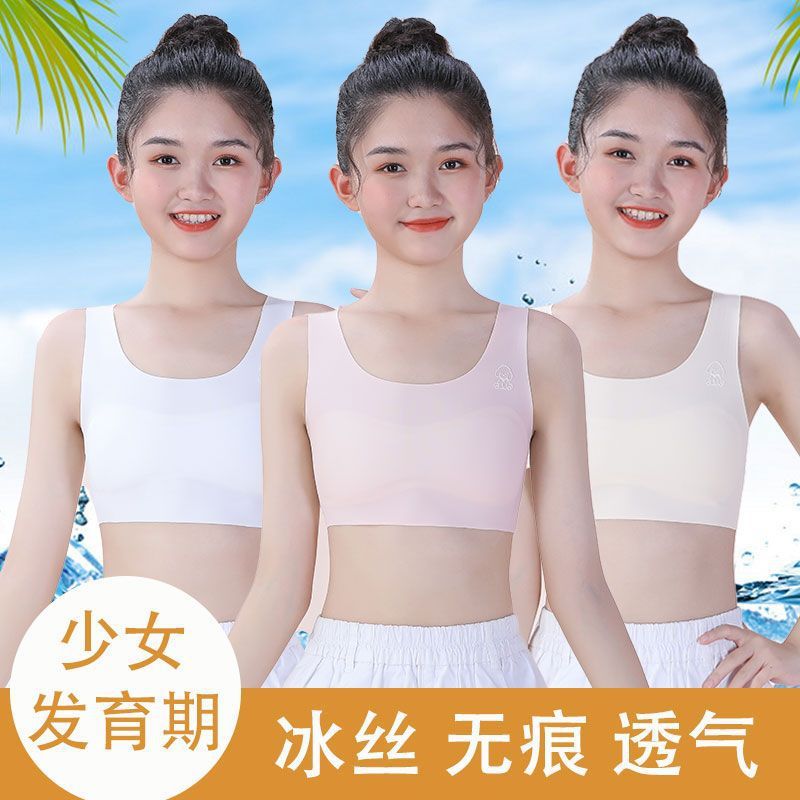 7-16 세 발달 조끼 얼음 실크 원활한 소녀 속옷 중학생 속옷 소녀 큰 어린이 브래지어 얇은스토어 가기