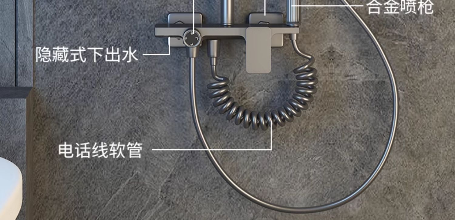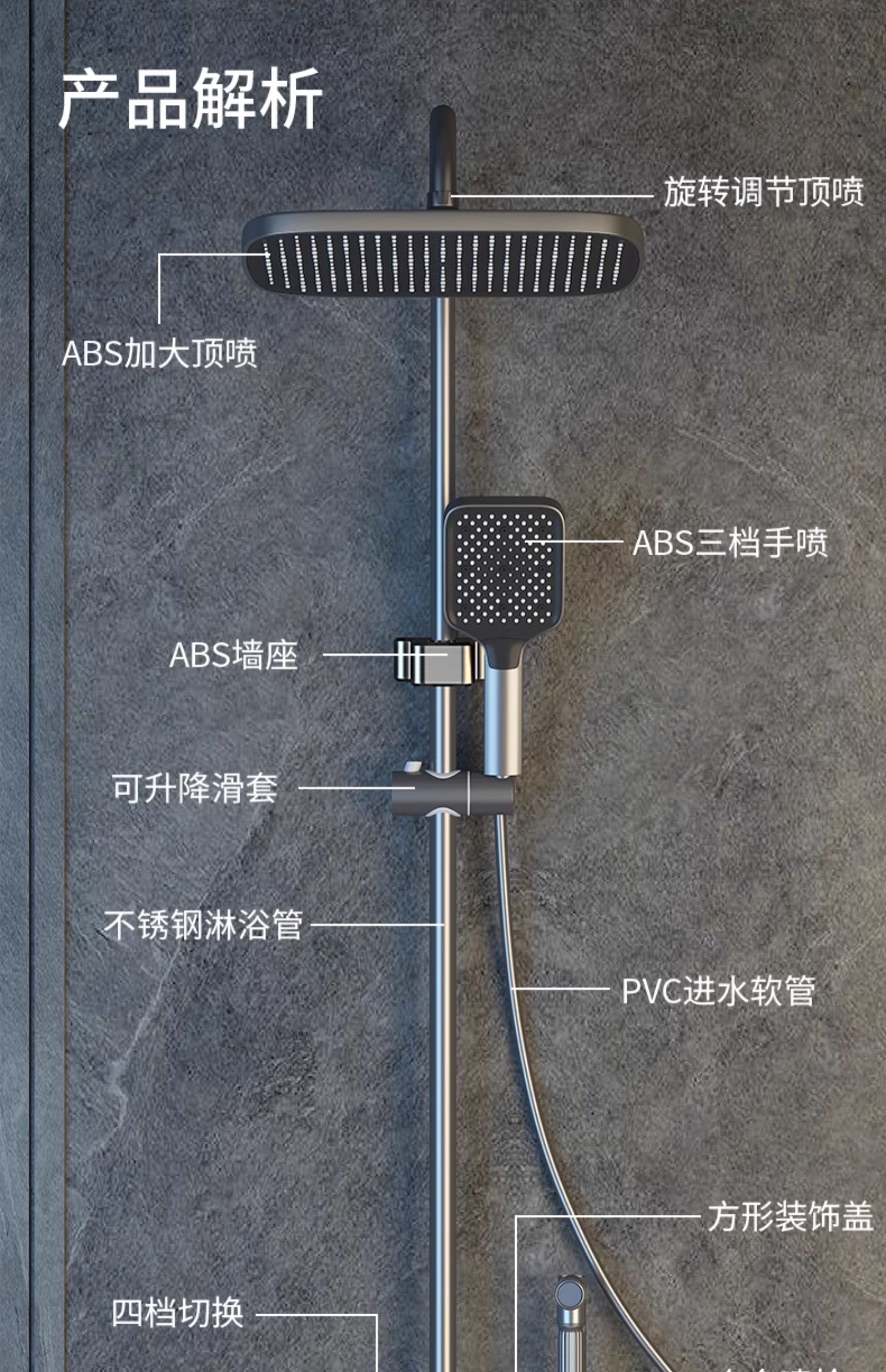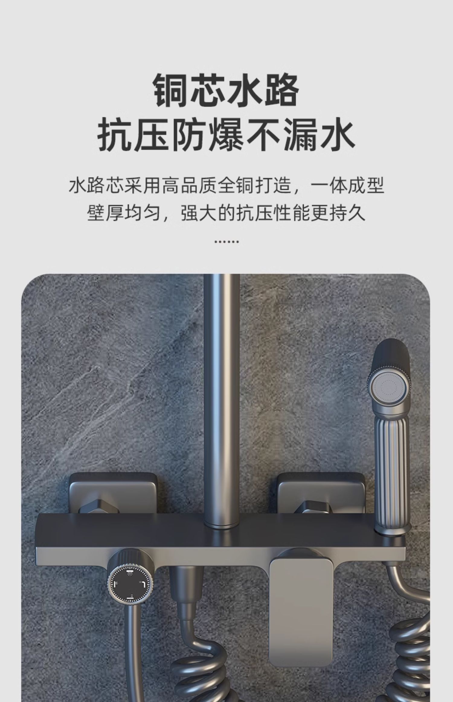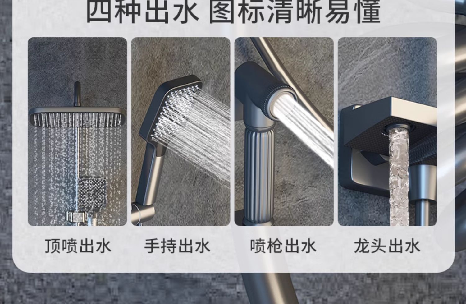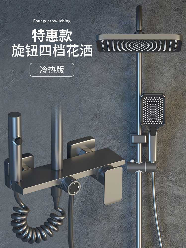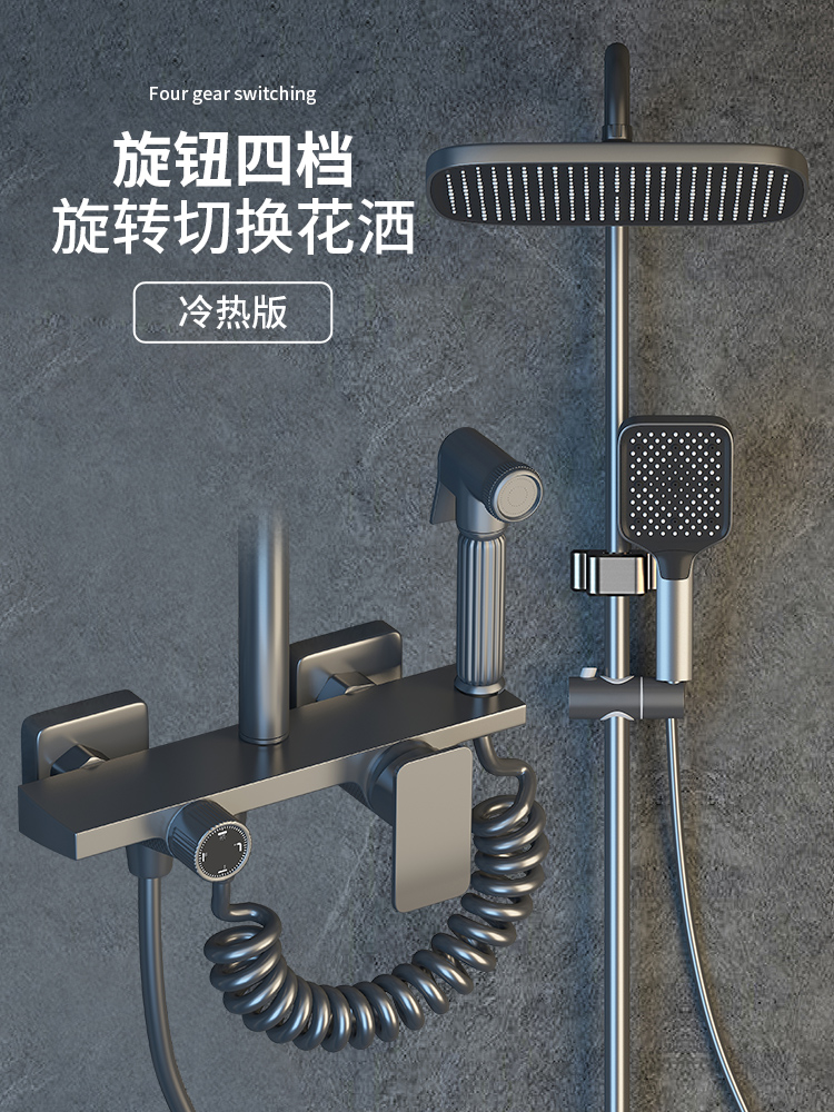건 그레이 샤워 헤드 세트 가정용 욕실 4단 샤워 욕실 샤워기 전체 구리 샤워 헤드