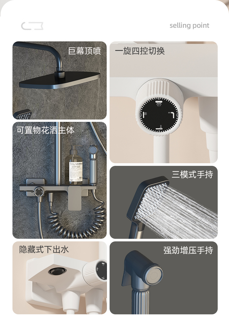 건 그레이 샤워 헤드 세트 가정용 욕실 4단 샤워 욕실 샤워기 전체 구리 샤워 헤드스토어 가기