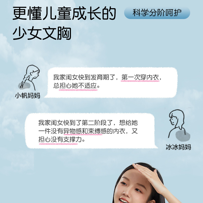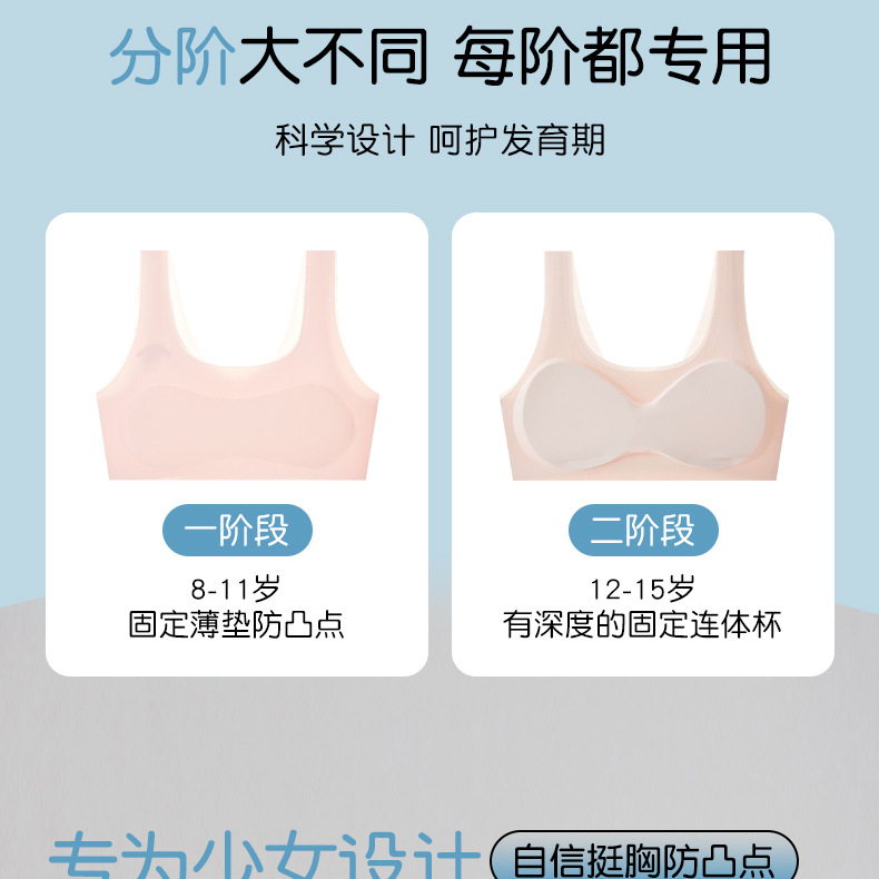 여아 속옷, 발달기 가슴 감싸기 고정컵 면 가슴 패드, 튜브탑, 여아 캐미솔, 중고생 브라스토어 가기