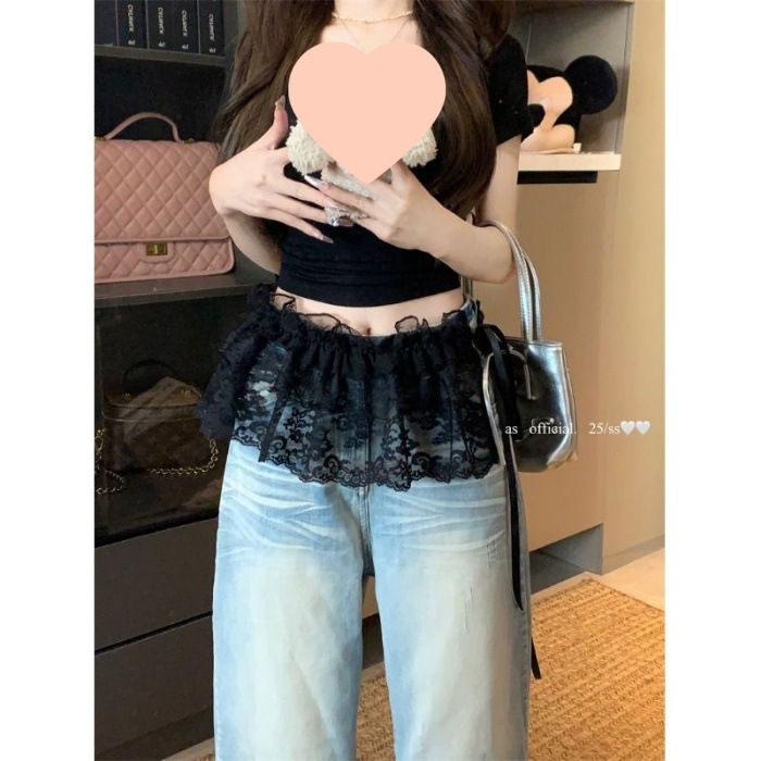 새로운 패셔너블하고 다재다능한 헤비듀티 레이스 엣지 짧은 엉덩이 커튼 앞치마 커튼 스커트 하프 길이 핫걸 스커트스토어 가기