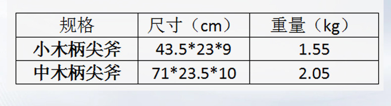 • 중간 나무 손잡이가 달린 날카로운 도끼