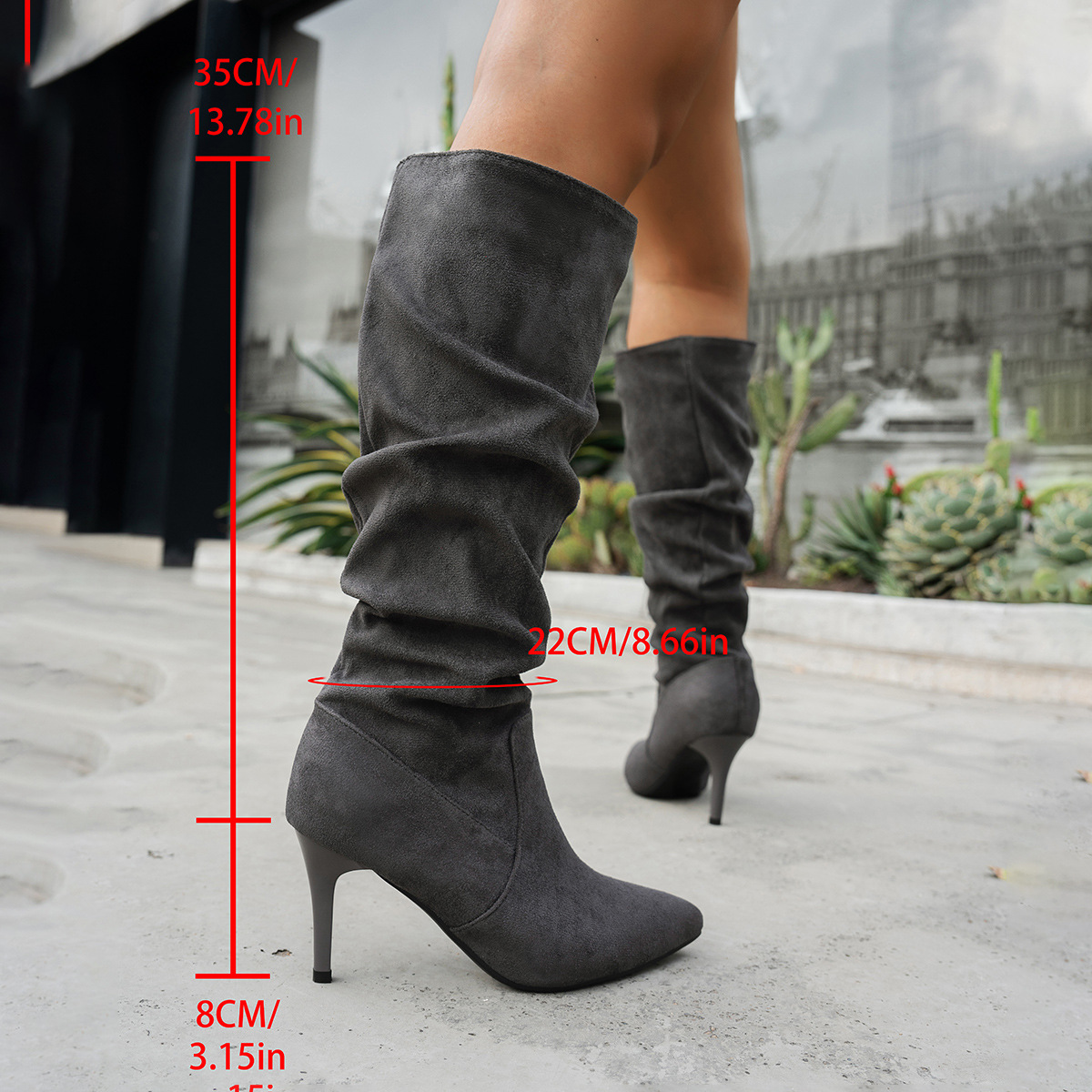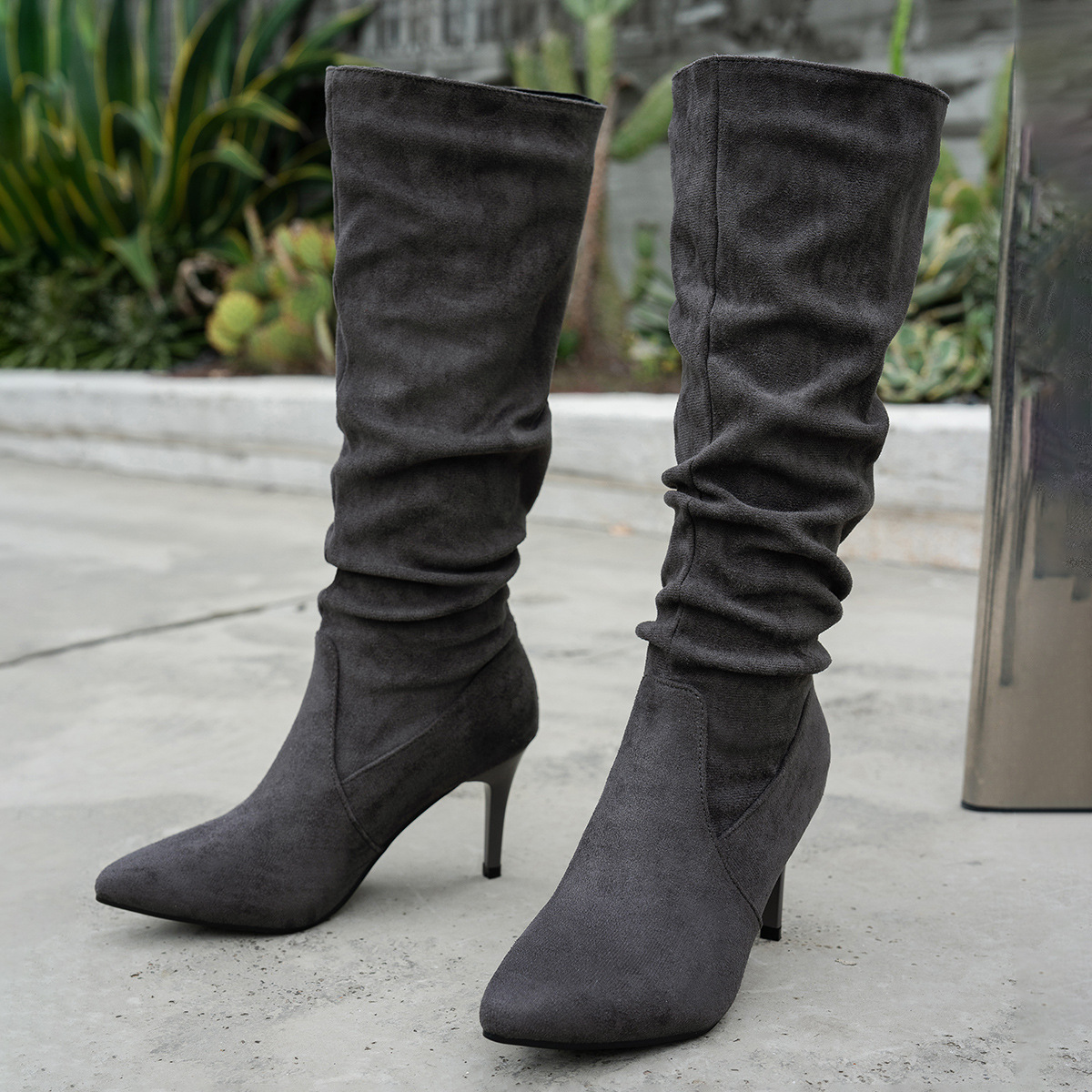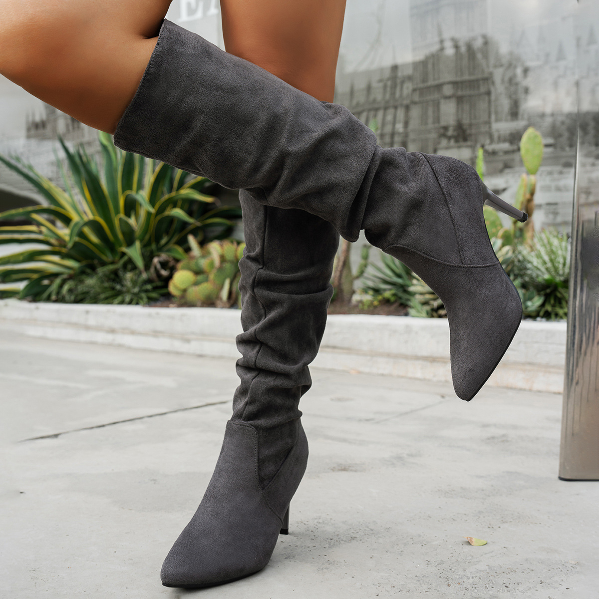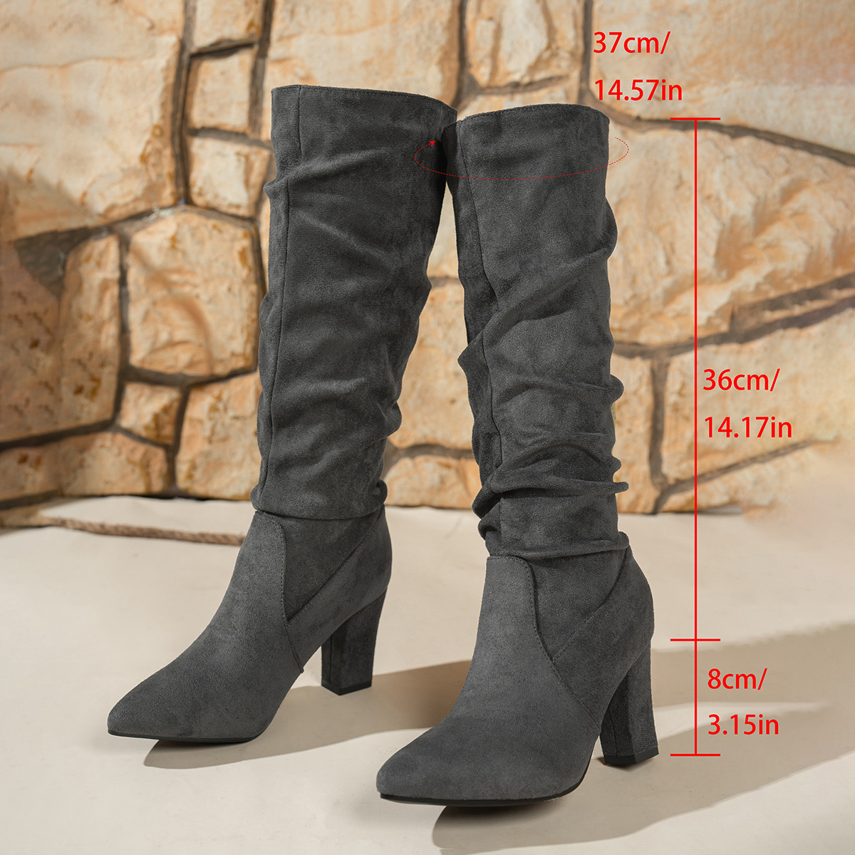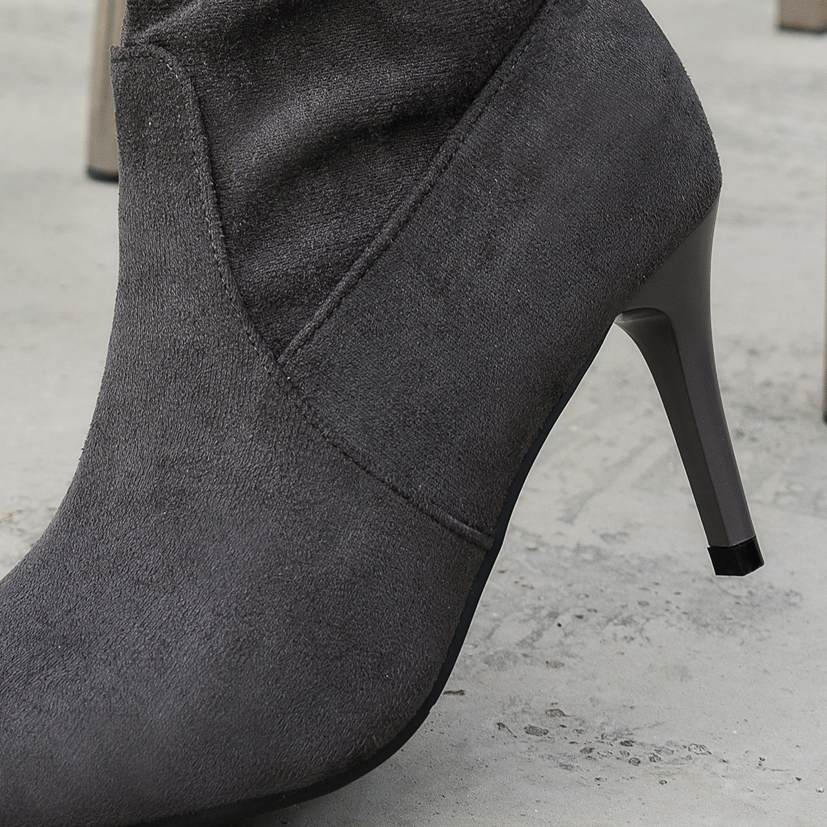 대외 무역 새로운 두꺼운 굽 뾰족한 발가락 무릎 위 여성 부츠 크로스 보더 하이힐 스택 부츠 슬리밍 부츠 WomenBoots 도매스토어 가기