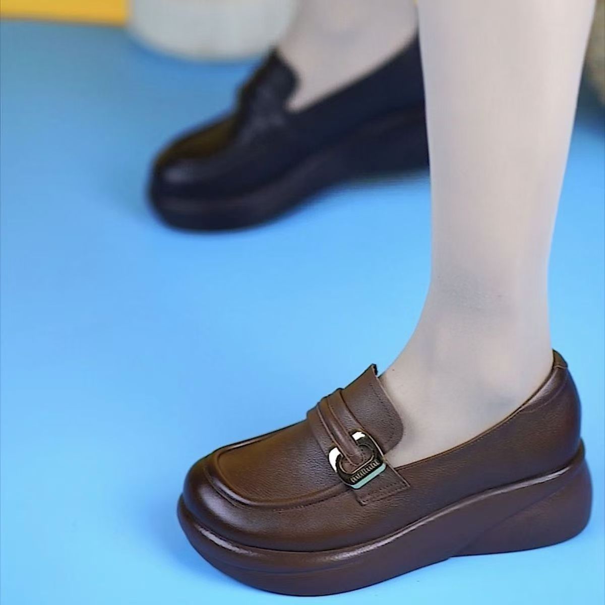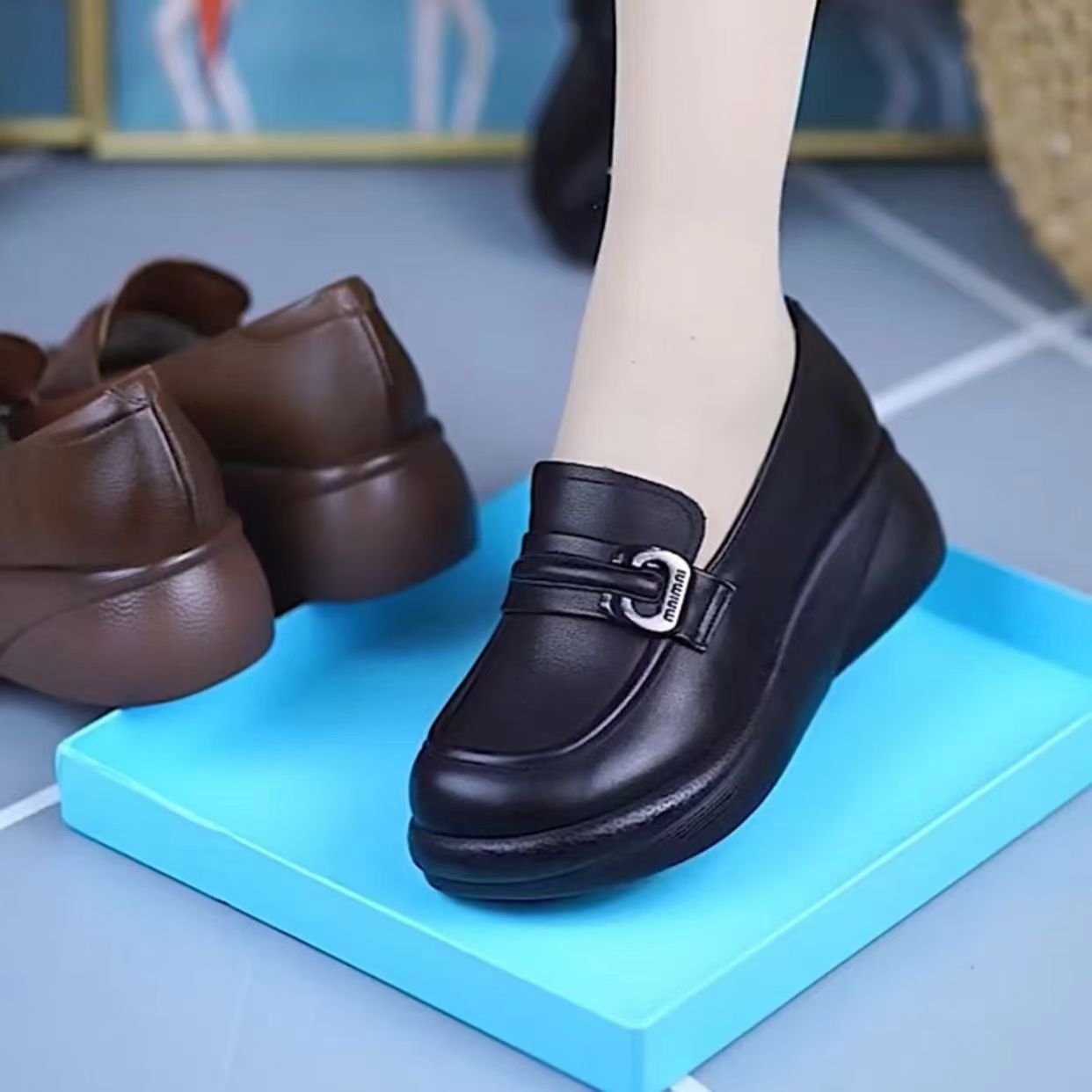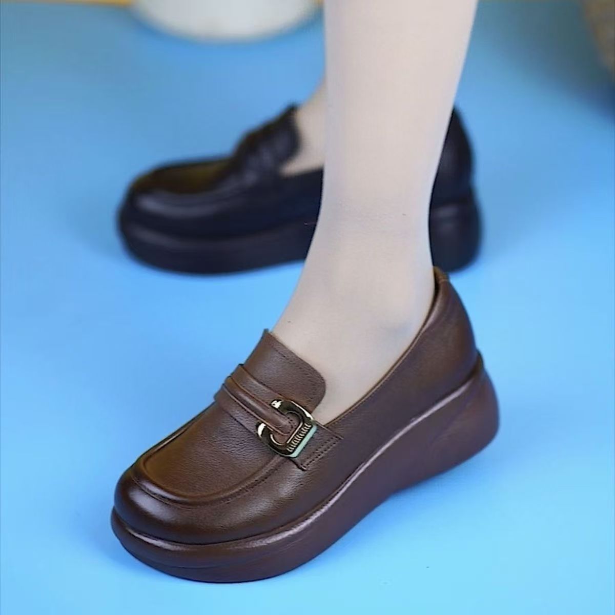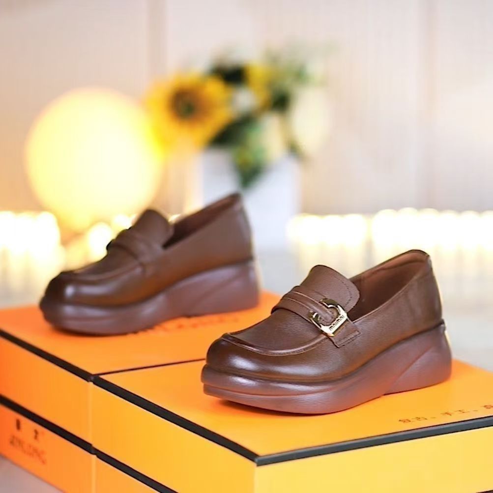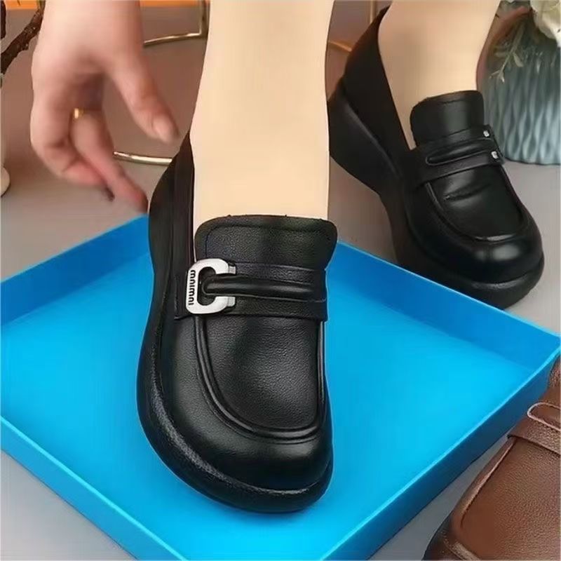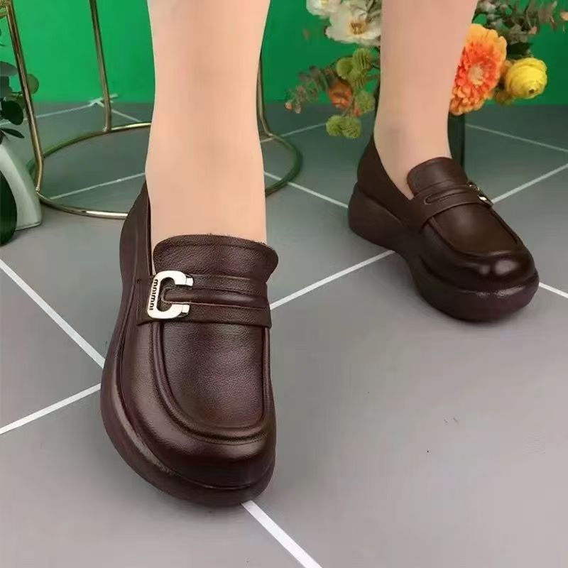 2024 부드러운 밑창 엄마 신발, 플랫 밑창 중년 로퍼, 편안한 가죽 신발, 중년 및 노인 여성 신발, 봄과 가을 스타일스토어 가기