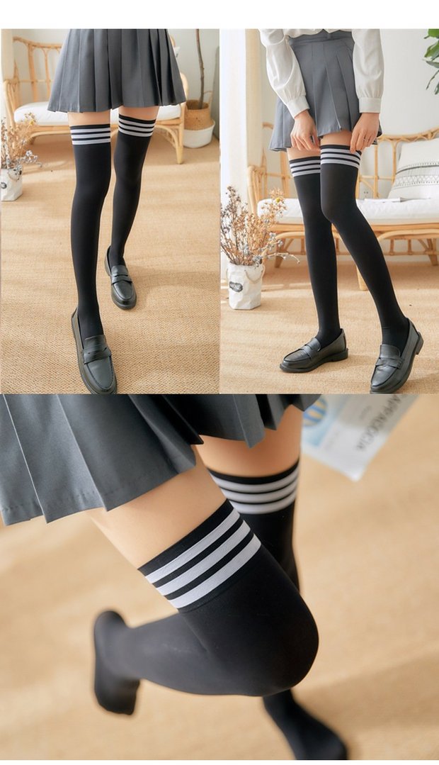 봄, 여름, 가을용 얇은 미끄럼 방지 하이삭스, 무릎 위 양말, 컬리지 스타일 롱삭스, 하프 타이즈, 중간 길이 스타킹스토어 가기