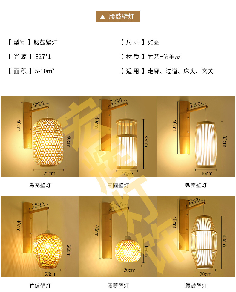 일본 선 벽 램프 B&B 찻집 레스토랑 호텔 거실 침실 머리맡 램프 복도 통로 랜턴 대나무 램프
