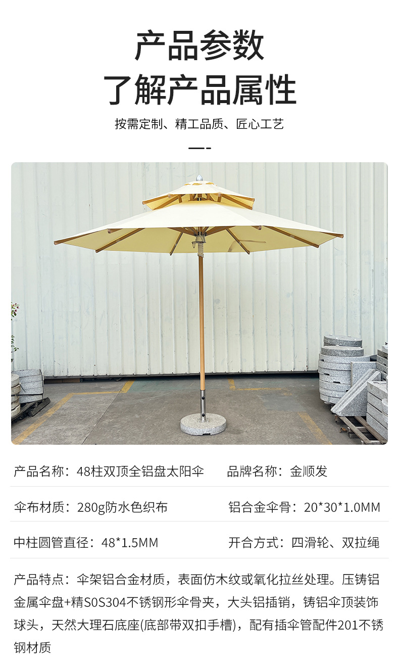 도매 더블 탑 전체 알루미늄 합금 중간 기둥 우산 야외 파라솔 발코니 정원 안뜰 야외 우산스토어 가기