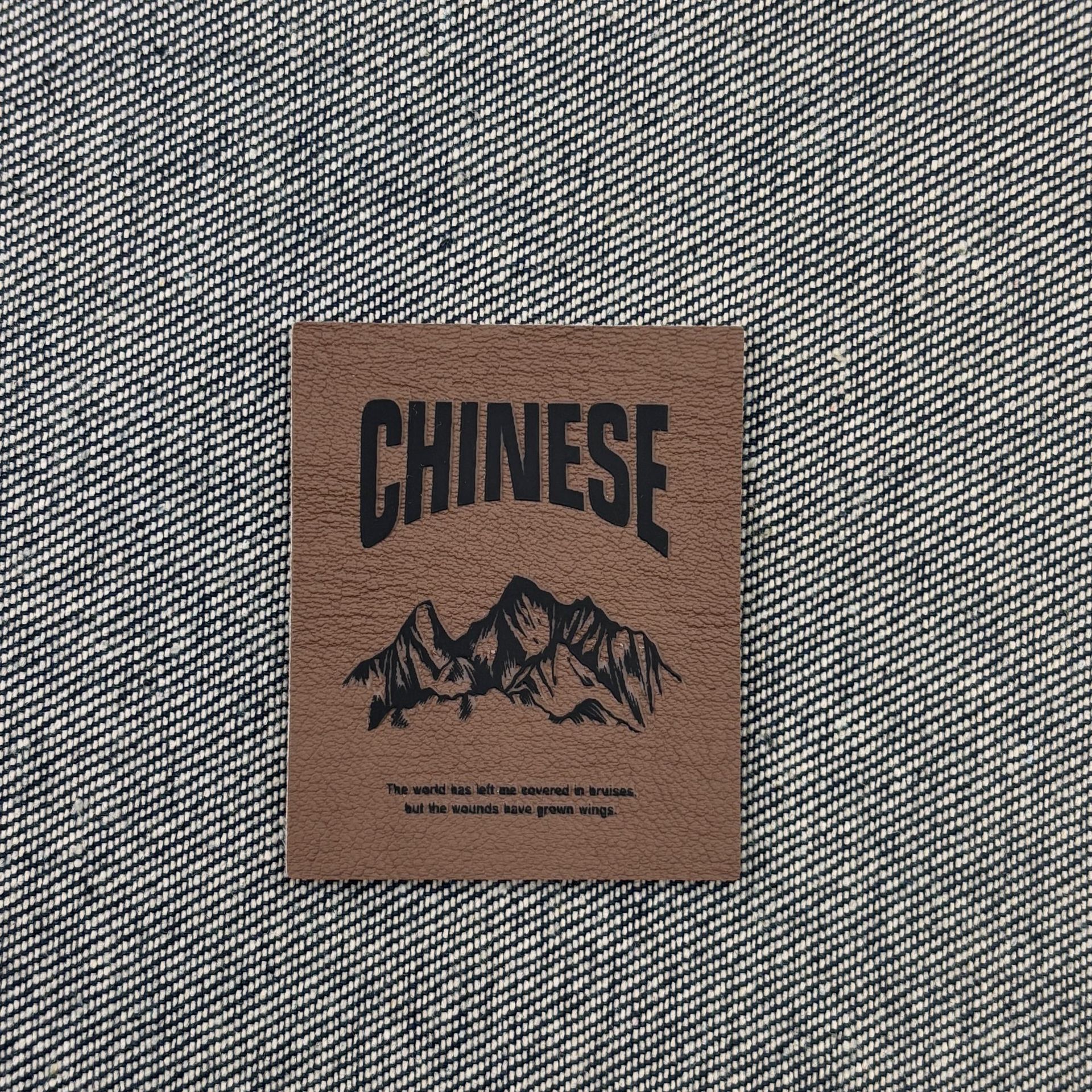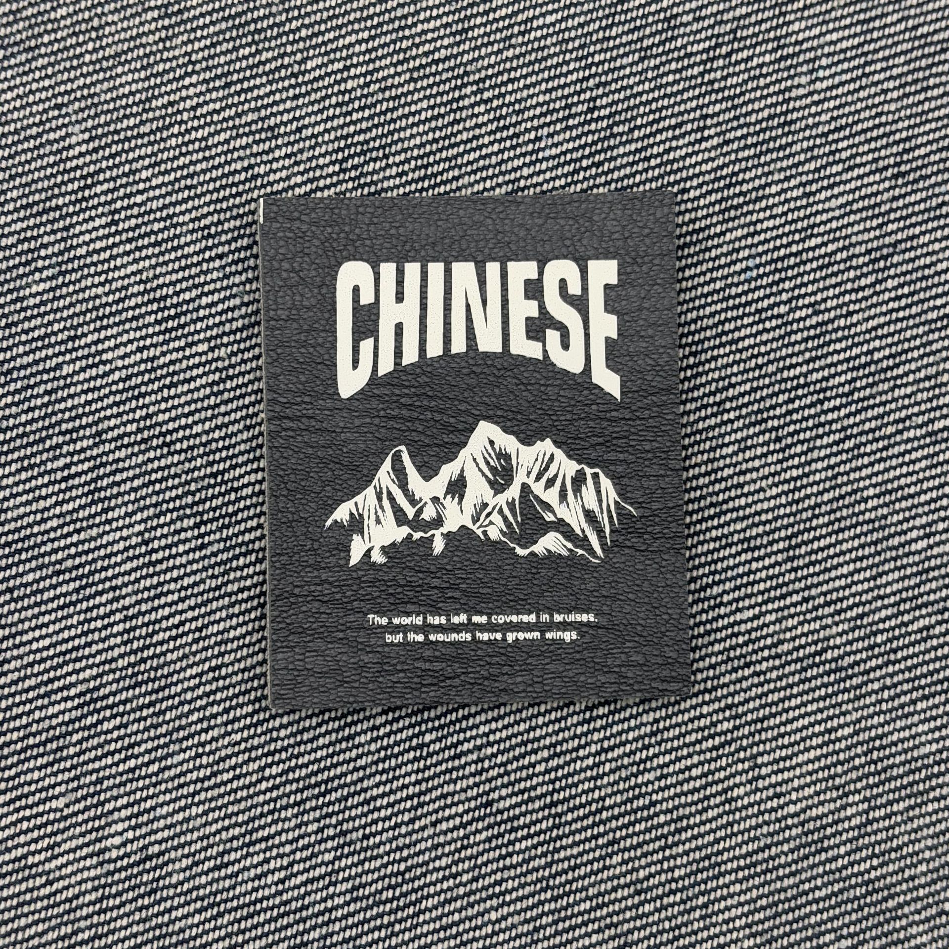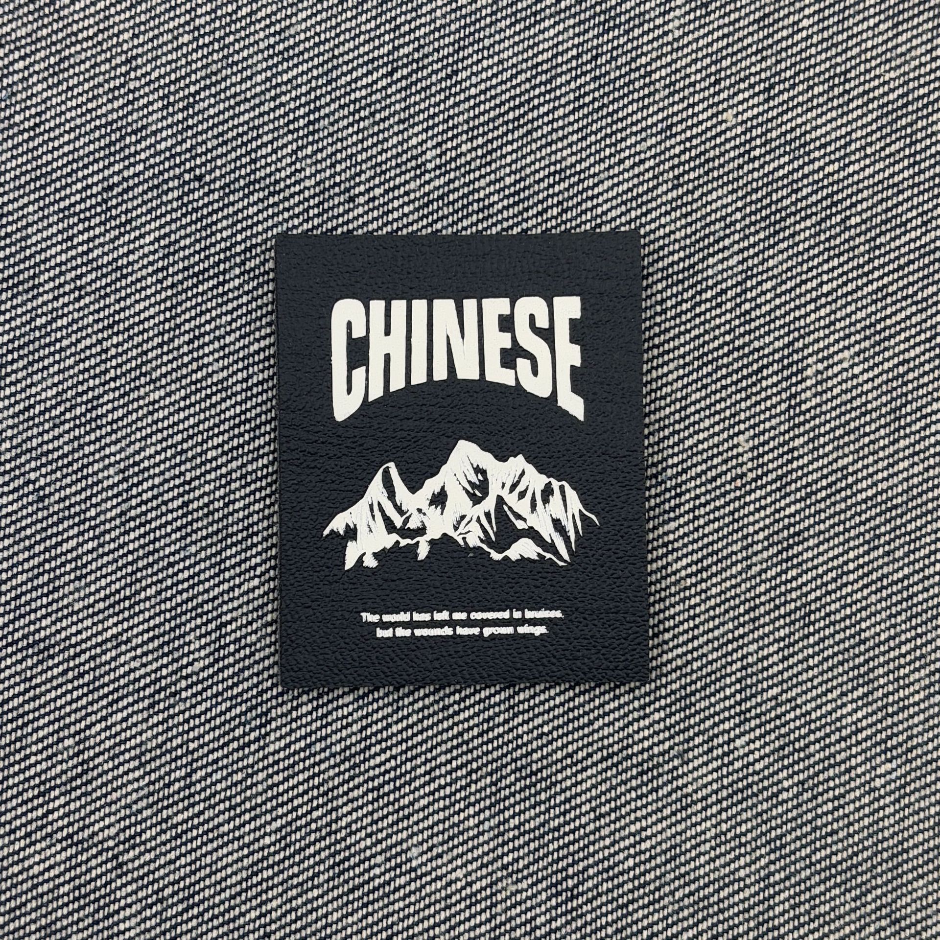 세로 직사각형 산 야외 시리즈 아동용 청바지 영어 가죽 라벨