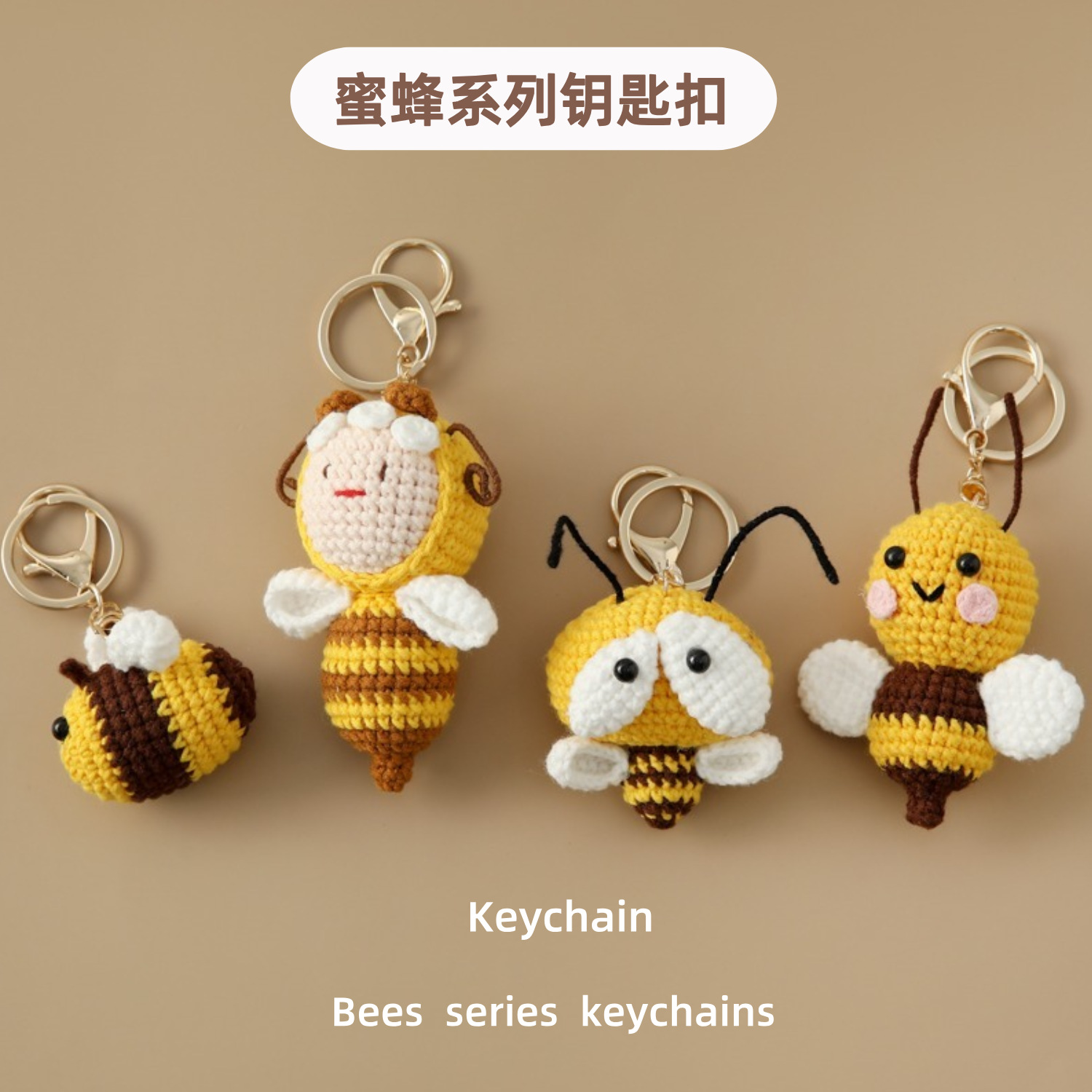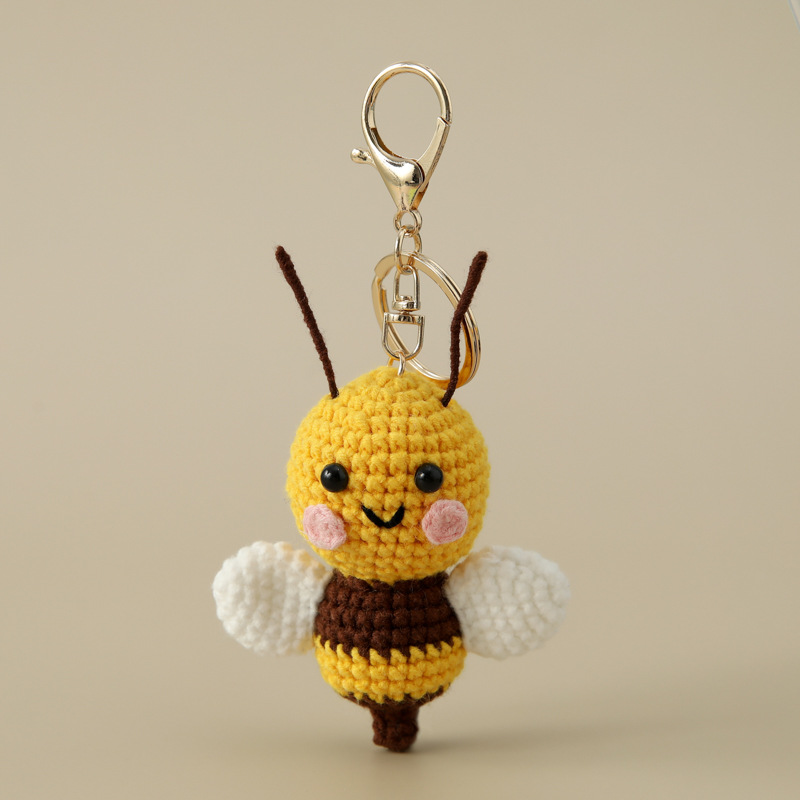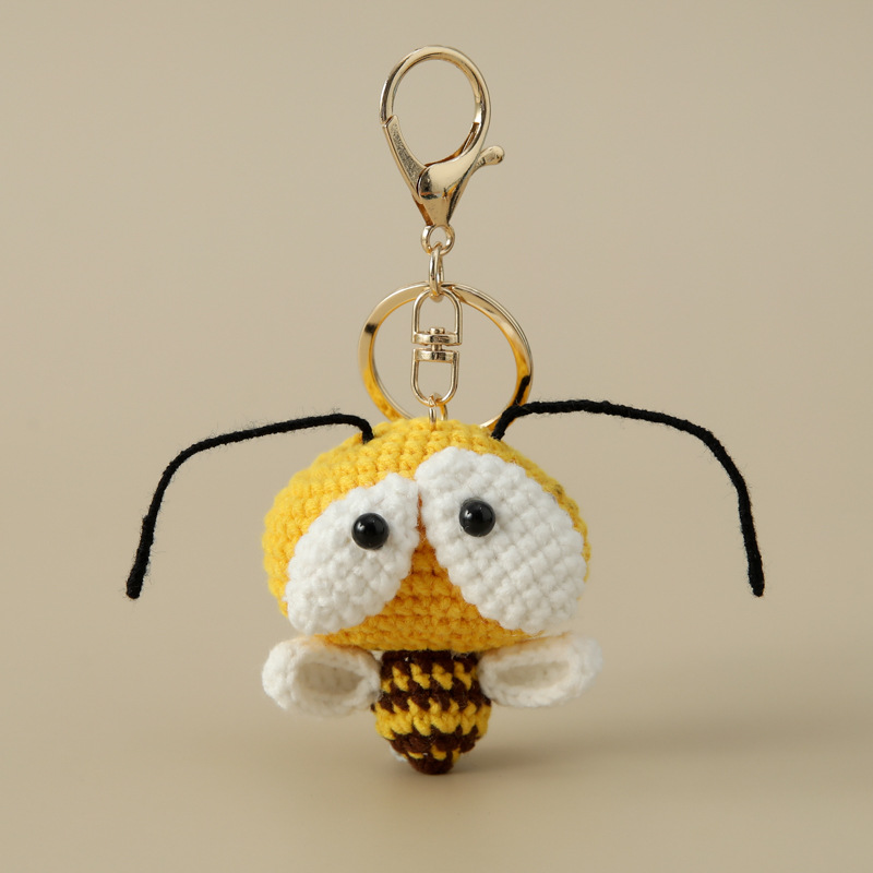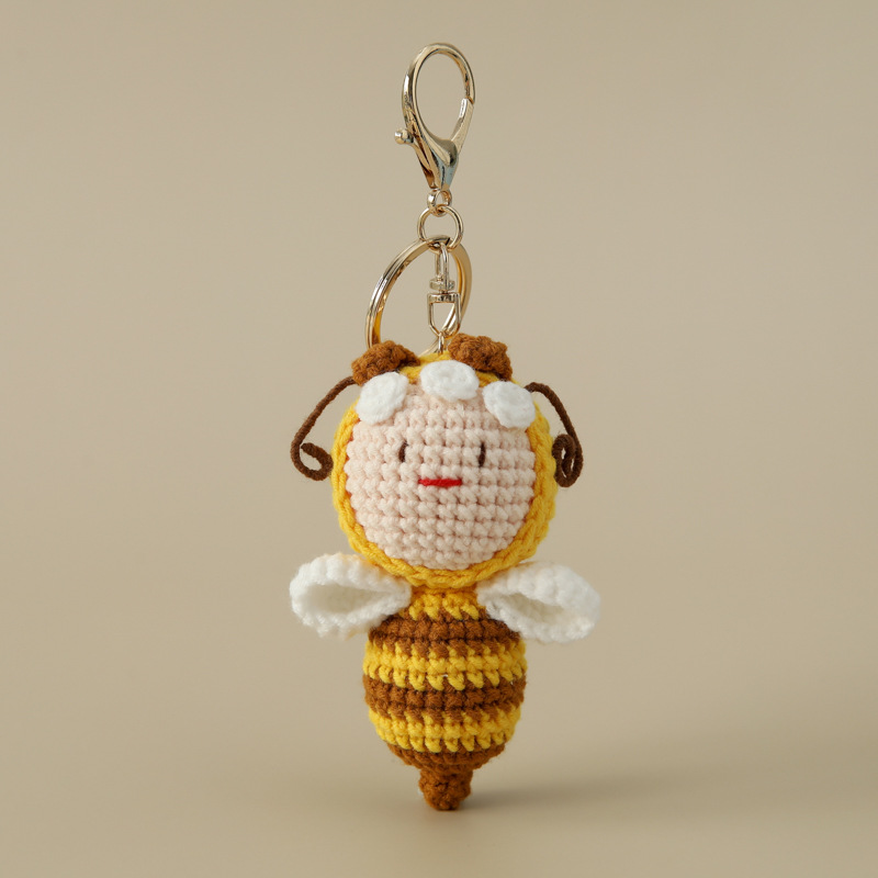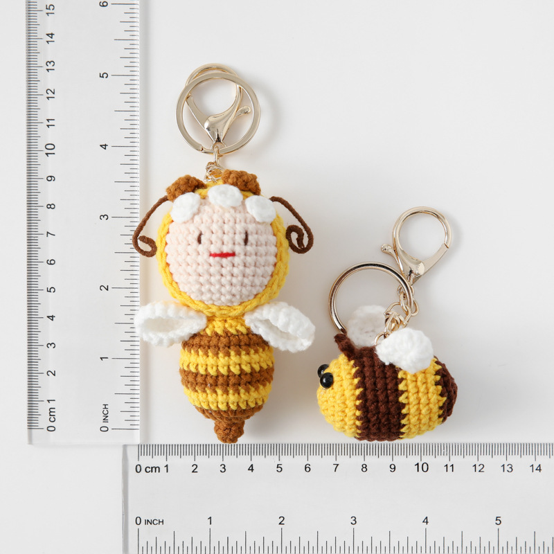 귀엽고 어린애 같은 완제품 손으로 짠 꿀벌 시리즈 열쇠고리 작은 꿀벌 가방 후크 바늘 친구 및 동료 선물