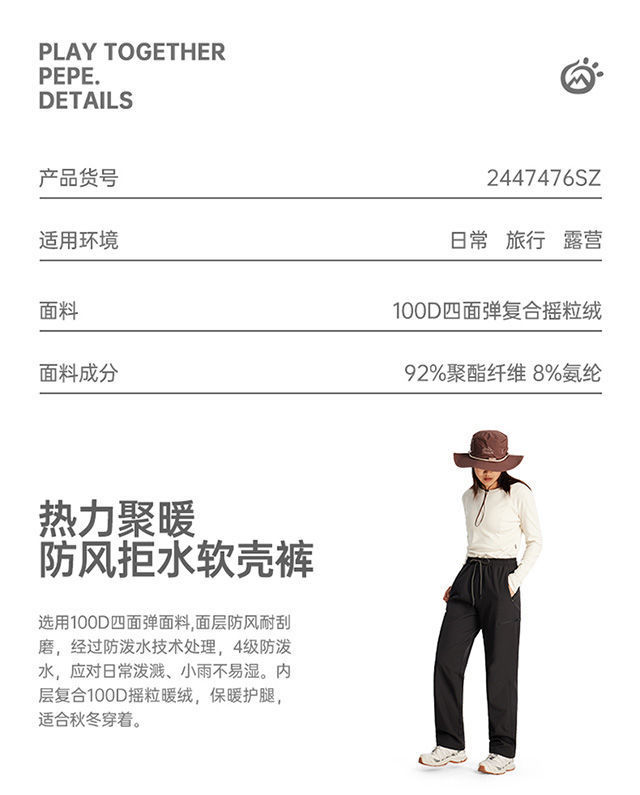 24 가을 겨울 탐험 소프트 쉘 바지 남성용 플러스 벨벳 따뜻한 방풍 및 방수 커플 스타일 여성용 하이킹 및 등산 바지